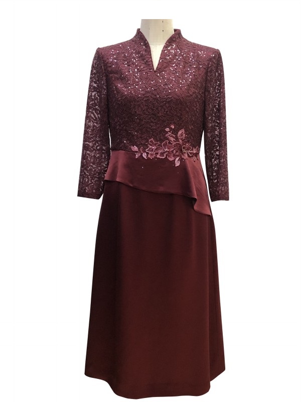 皮尔卡丹女装年秋季新款蕾丝小H摆礼服连衣裙P1307E1877T0