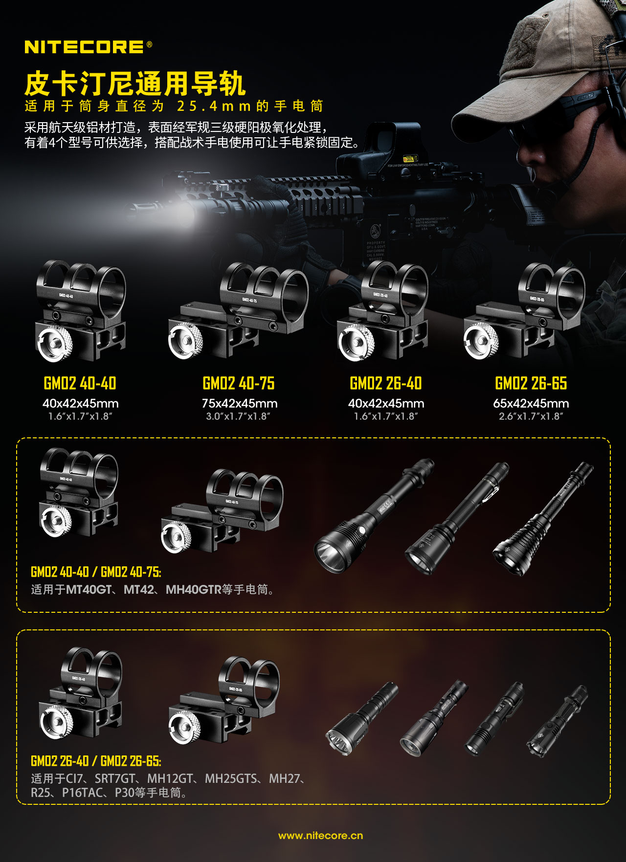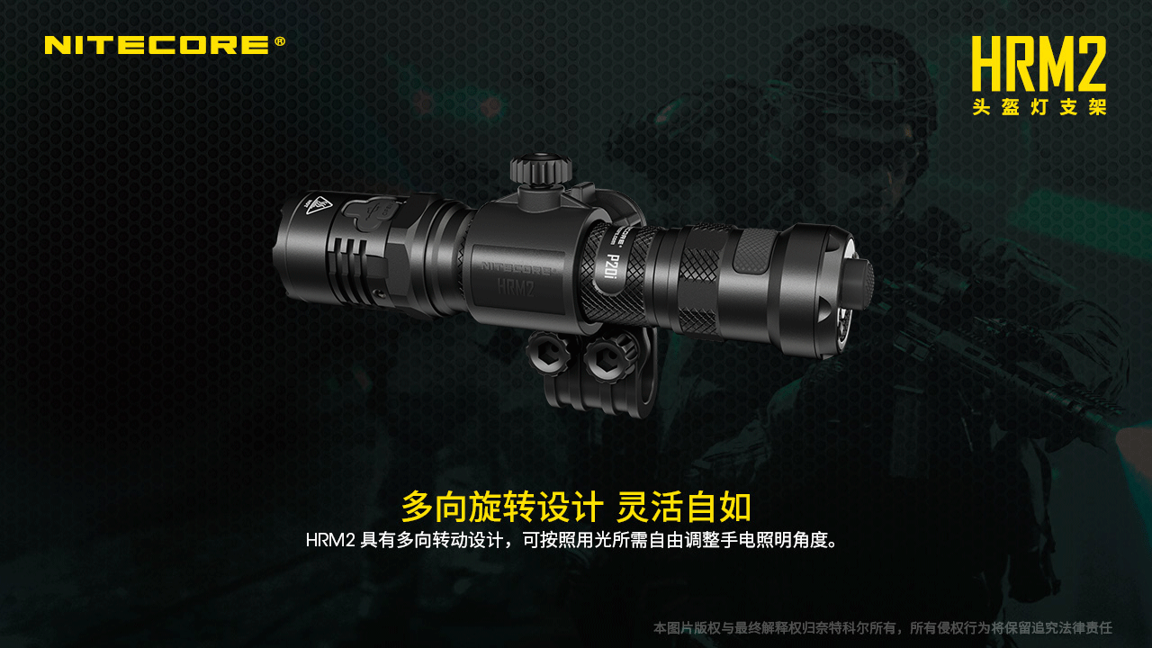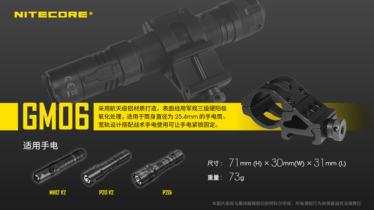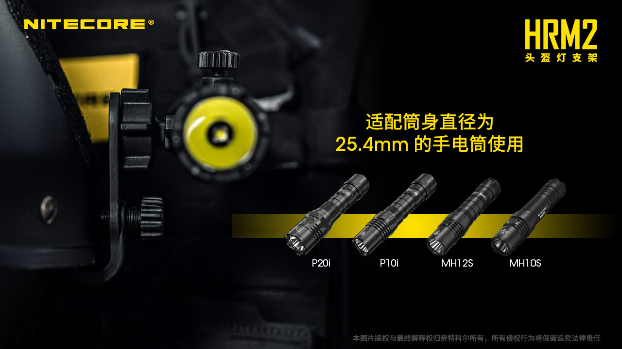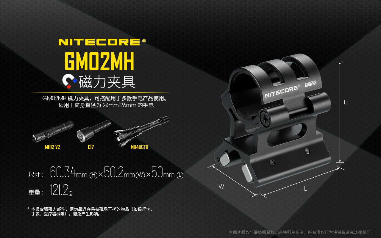 NITECORE奈特科尔电筒夹具适用25.4mm筒身GM02GM02MHGM06磁力枪夹LMA1HRM2头盔灯手电夹具