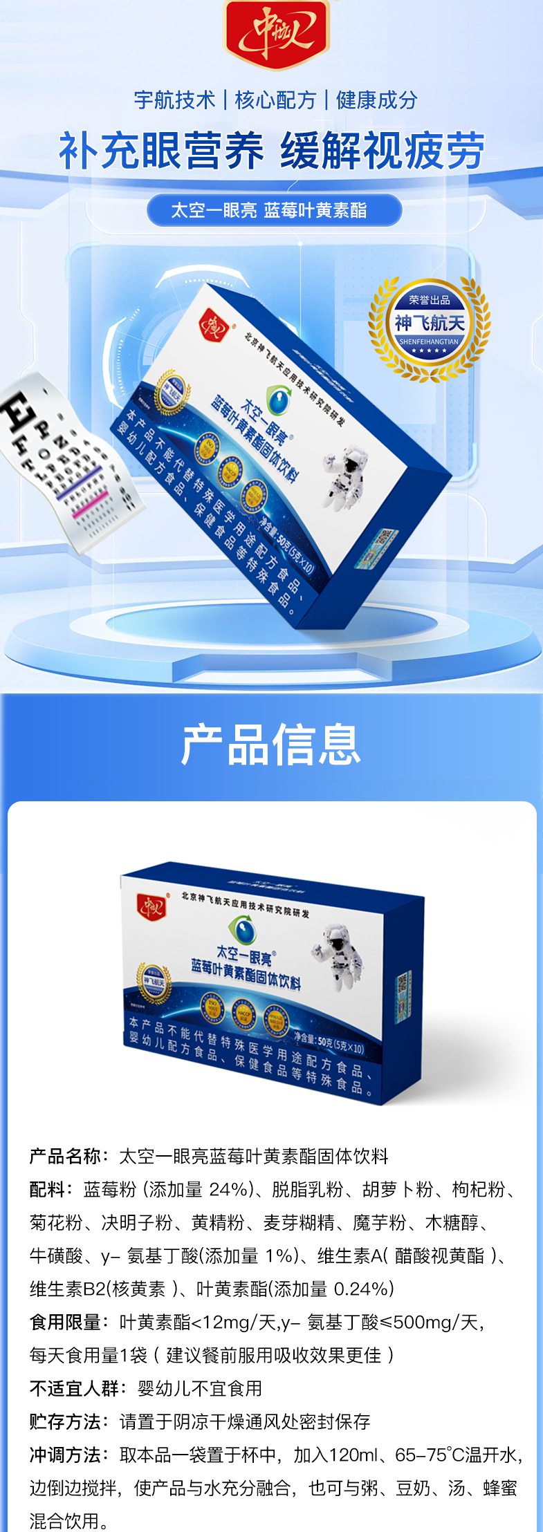272613神飞航天研发太空一眼亮蓝莓叶黄素酯固体饮料专供组
