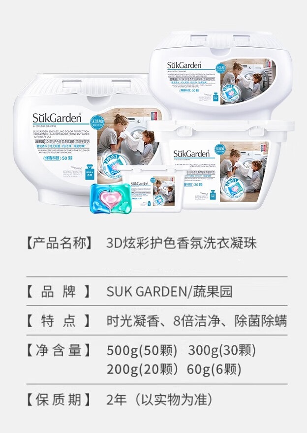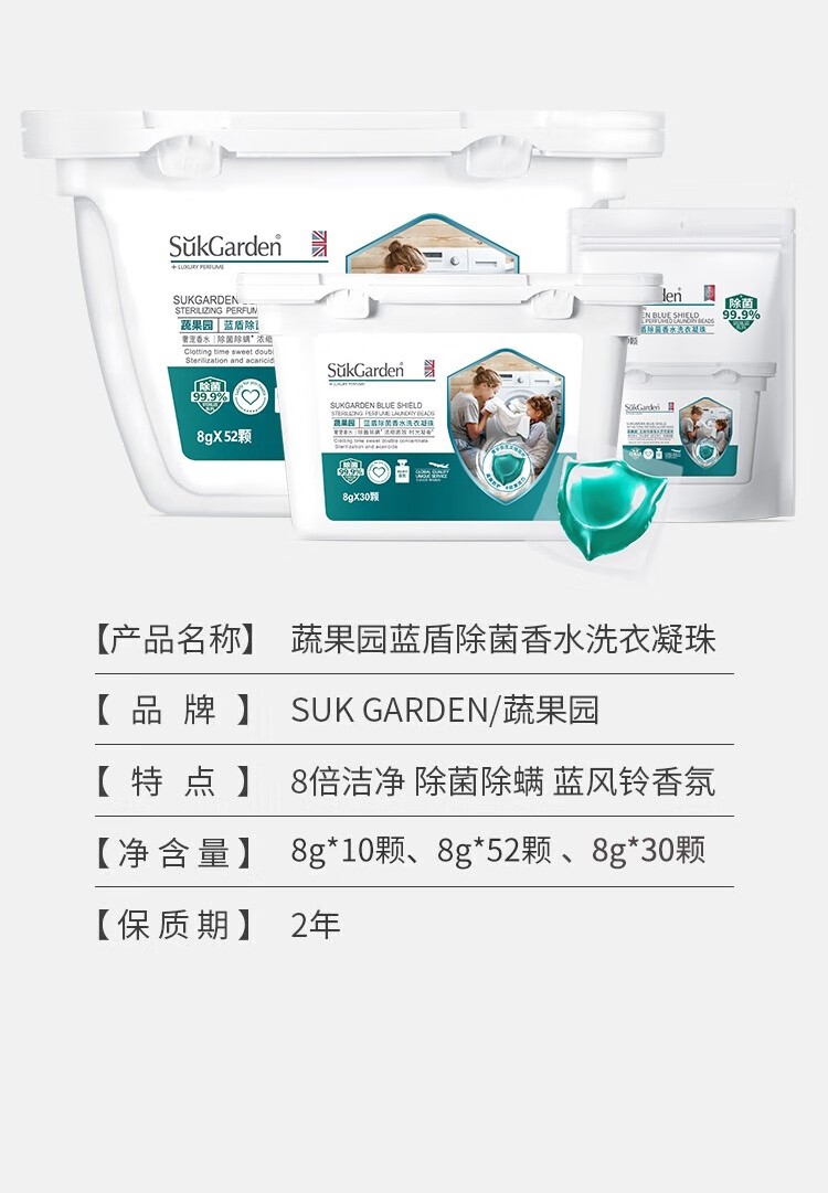 蔬果园3D洗衣凝珠(浓缩强效型)10g*30颗*4盒+蔬果园蓝盾蓝风铃香水洗衣凝珠8g*10颗(袋装)*3袋+蔬果园蓝风铃留香珠18g*4袋