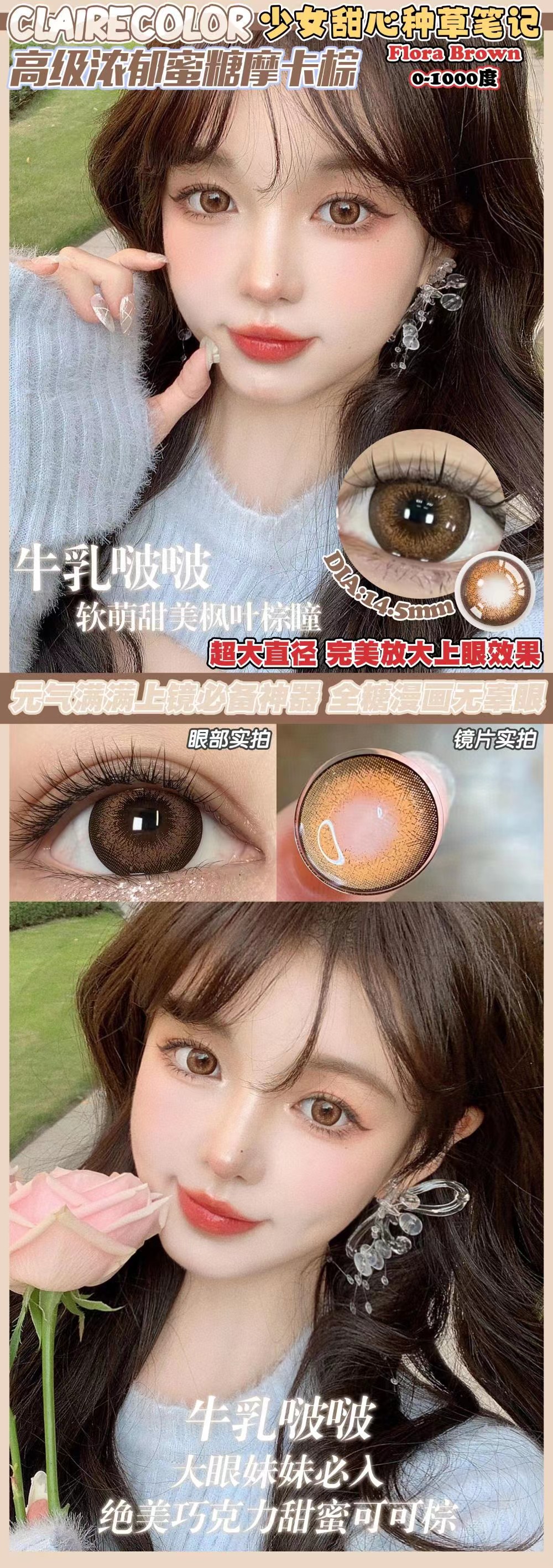 Clairecolor【奶冻啵啵/乌龙啵啵/牛乳啵啵】自然又耐看系列 漫画芭比大眼睛 圆润外圈锁边更显可爱