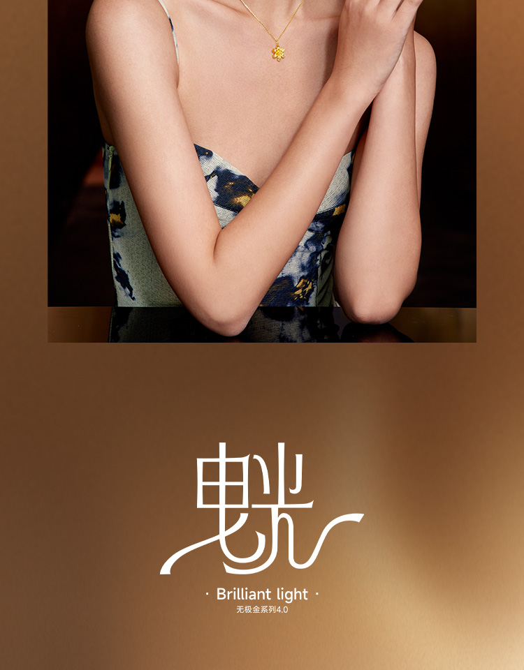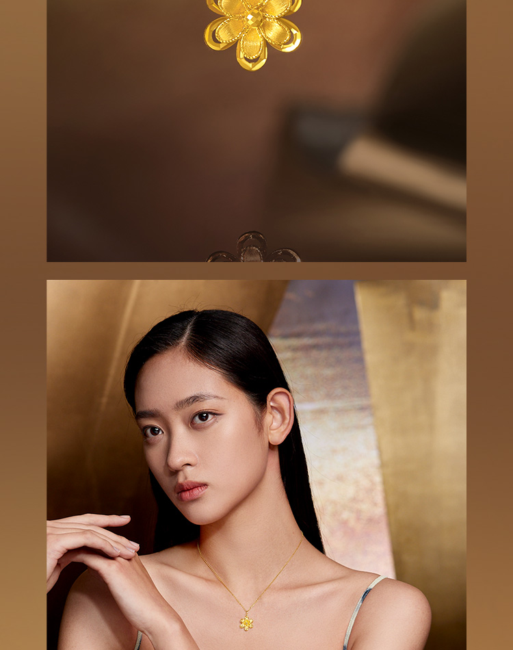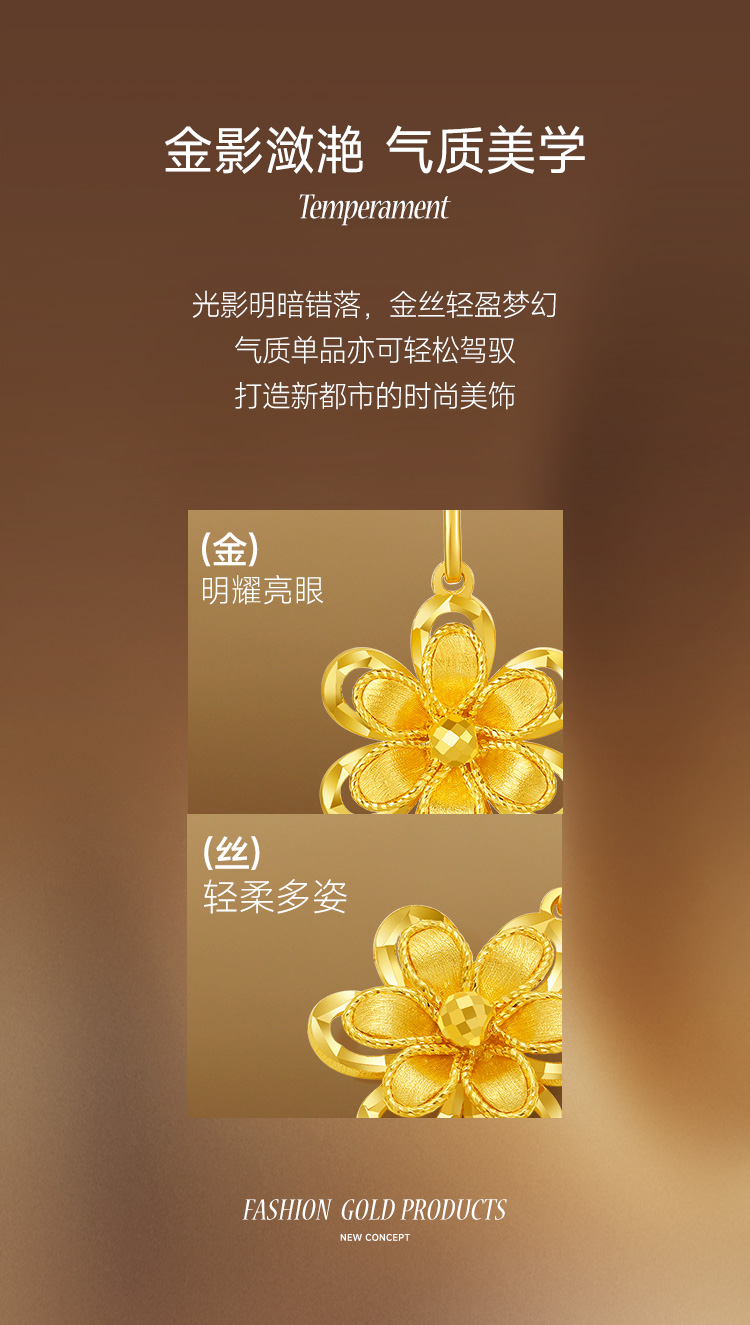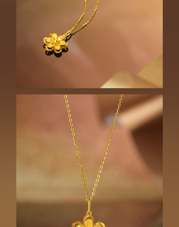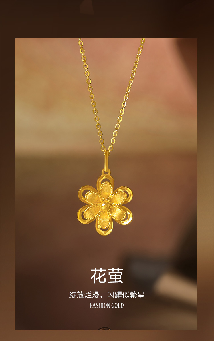 周六福5G黄金吊坠女闪亮拉丝足金计价花朵曳光送女友节日礼物