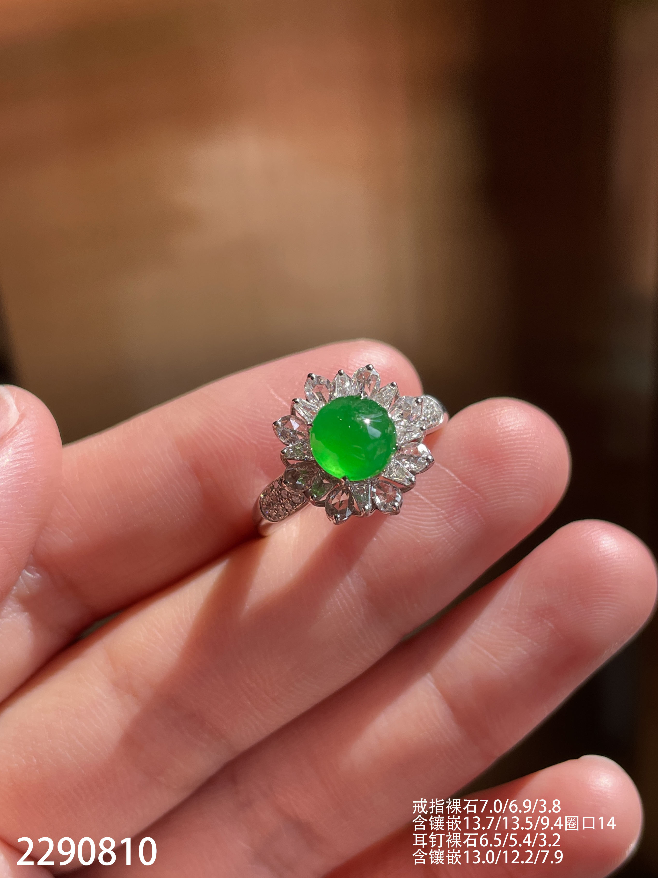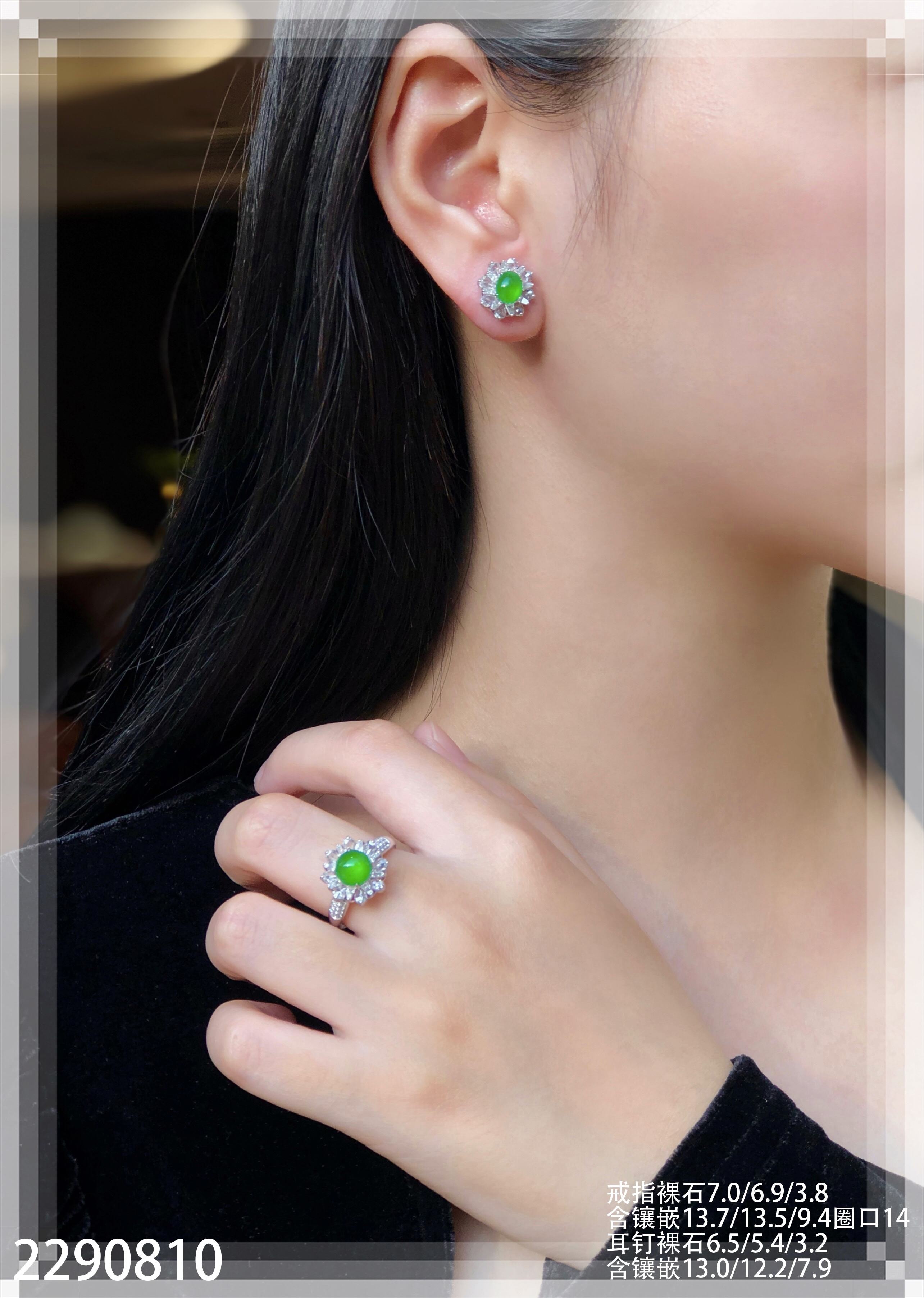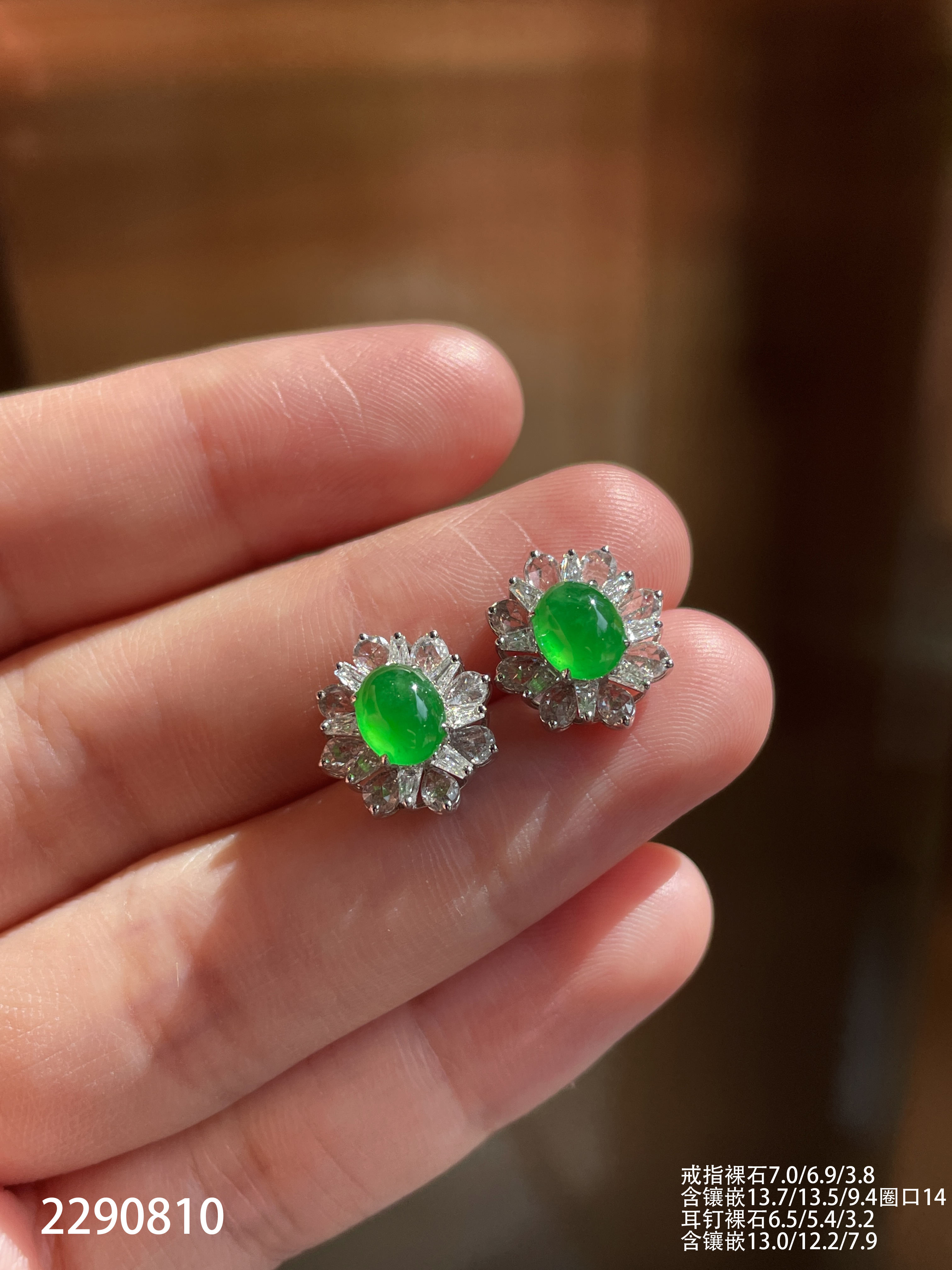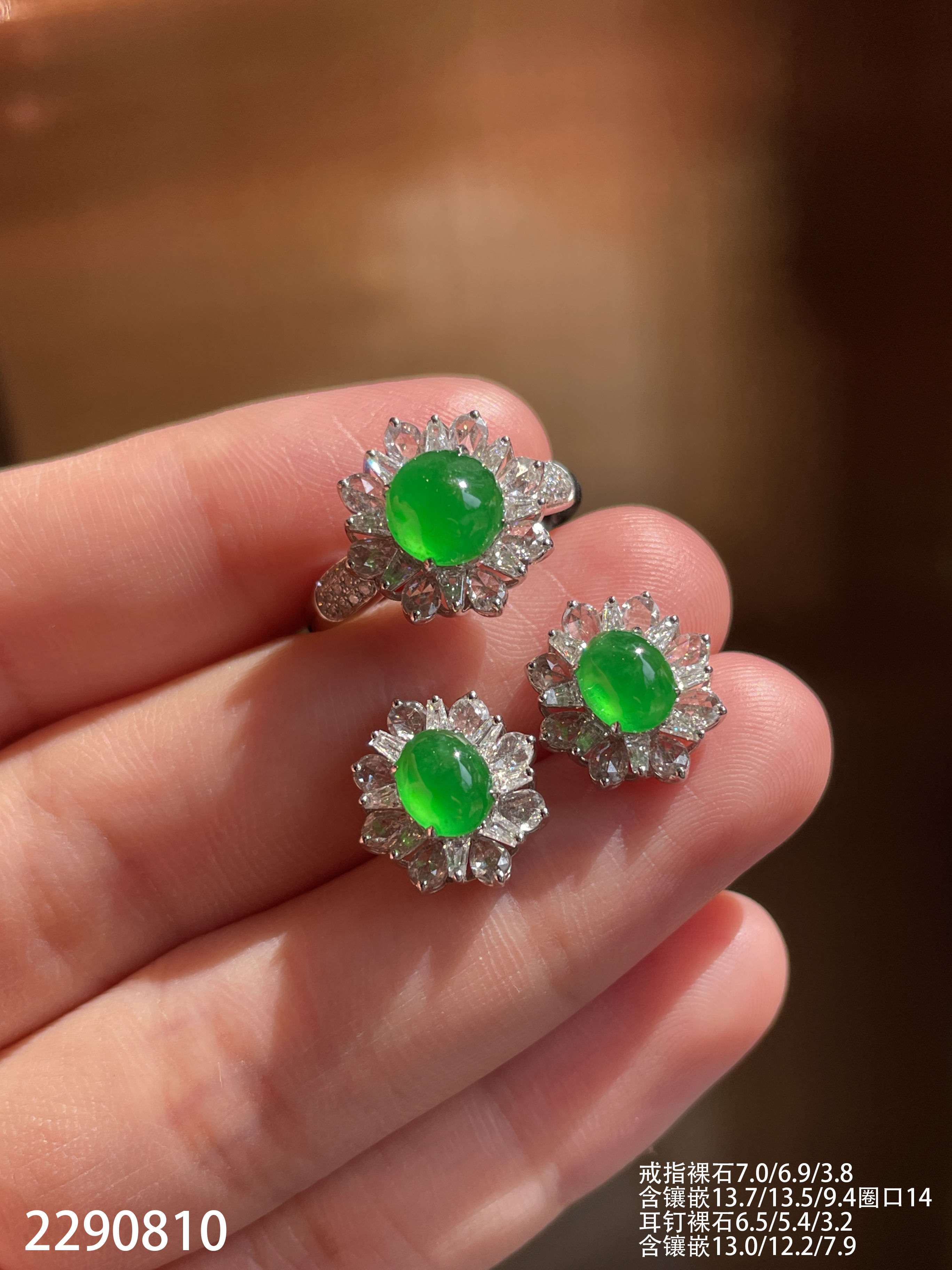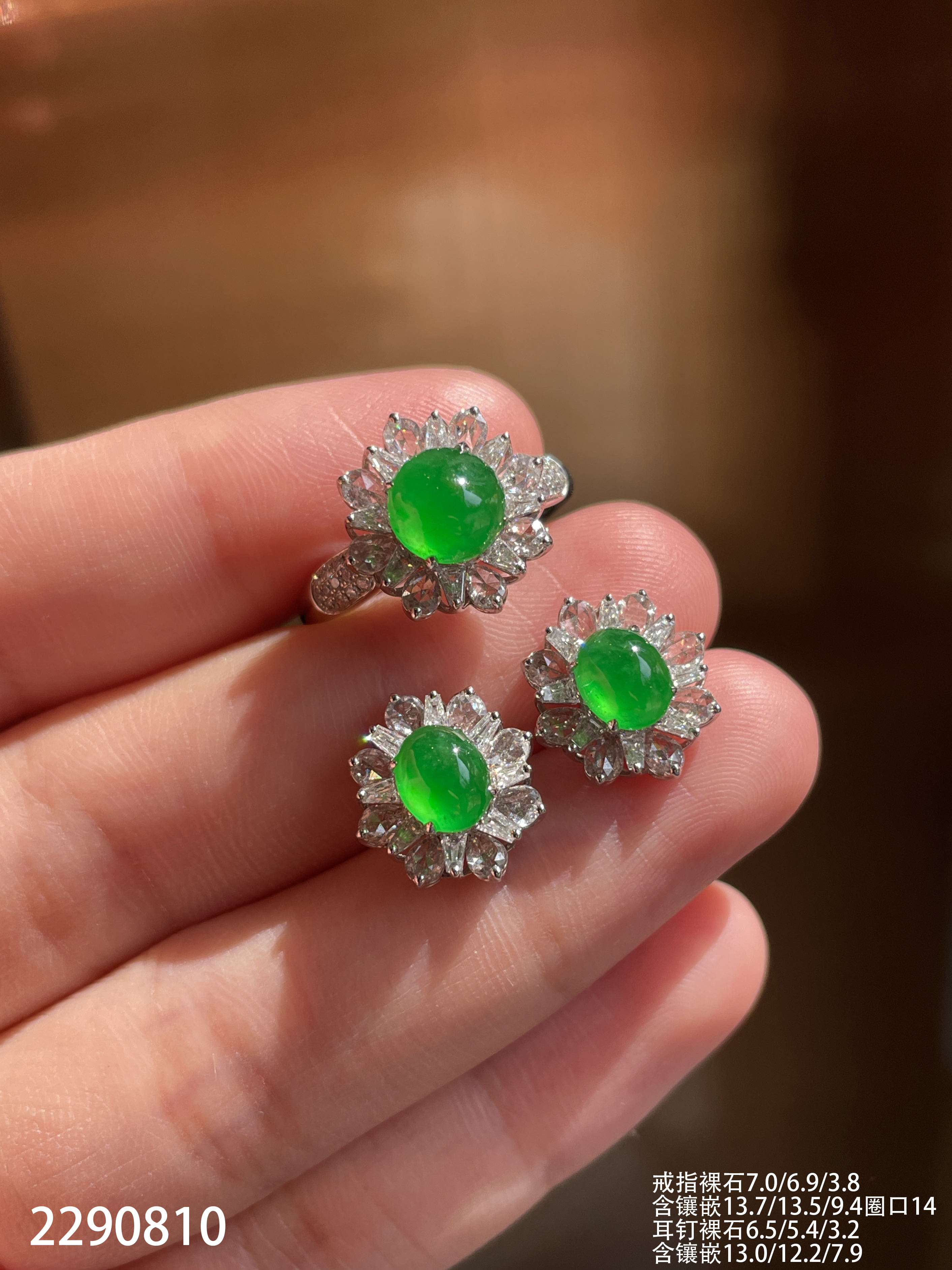 2290810,老坑玻璃艳绿蛋面套装。具体价格微信咨询