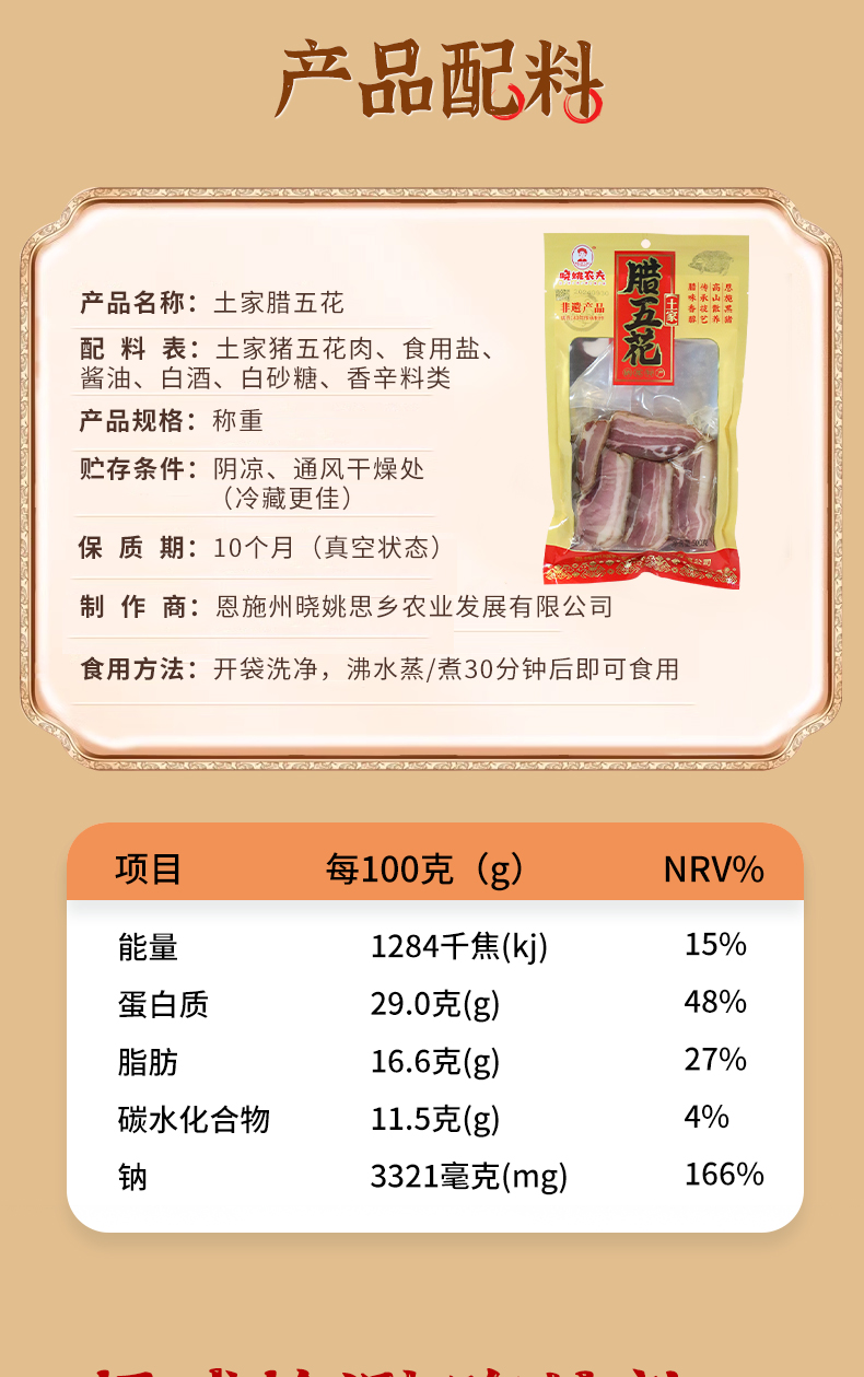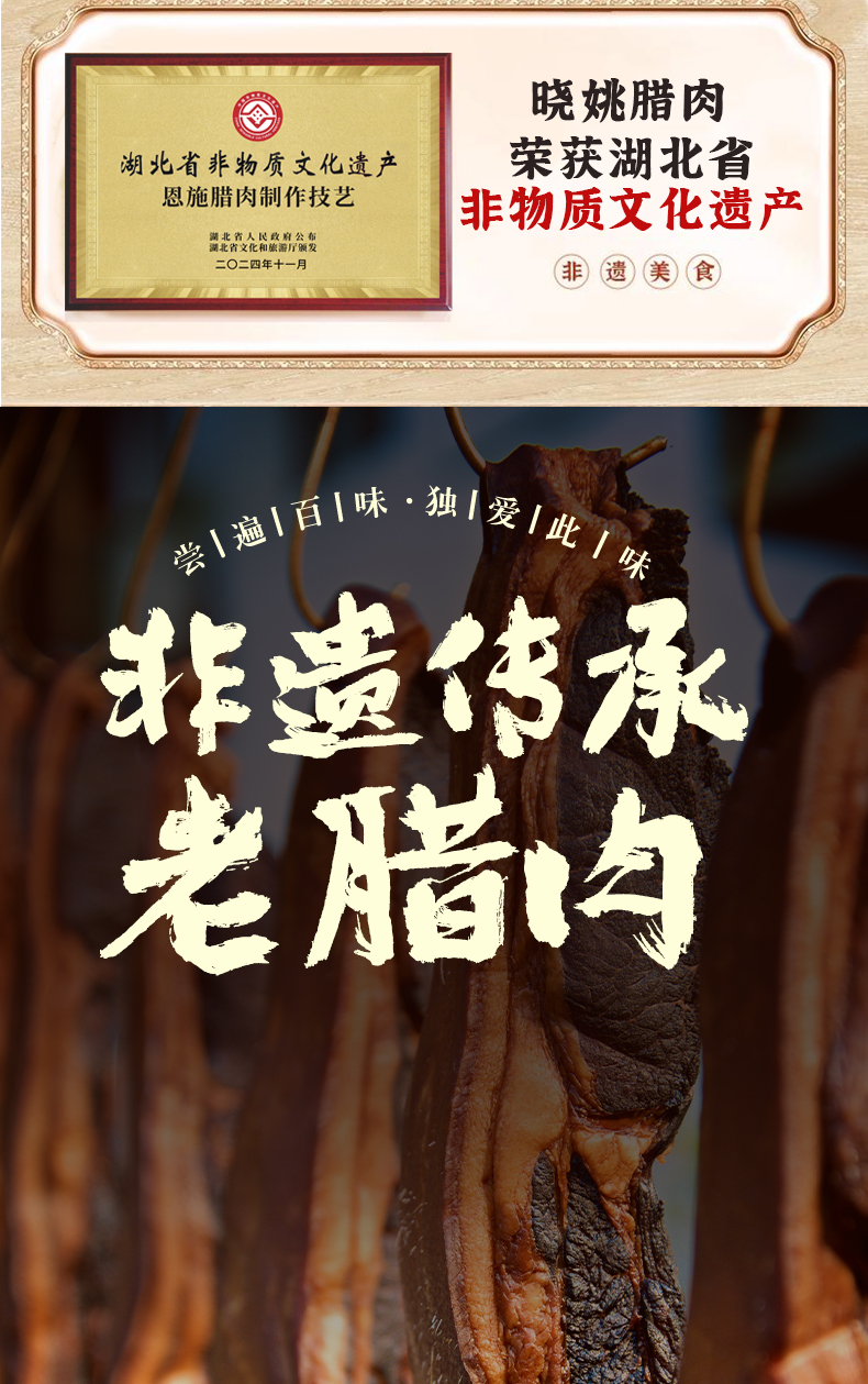 恩施 晓姚 非遗腊肉 黑猪腊五花肉500g/袋