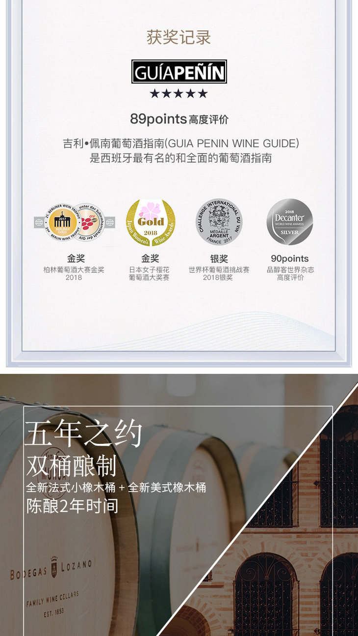 【柏林葡萄酒大赛金奖】洛萨诺酒庄 西班牙 原装进口 DO级金欧上 干红葡萄酒 金奖红酒单支 幽灵舰队推荐