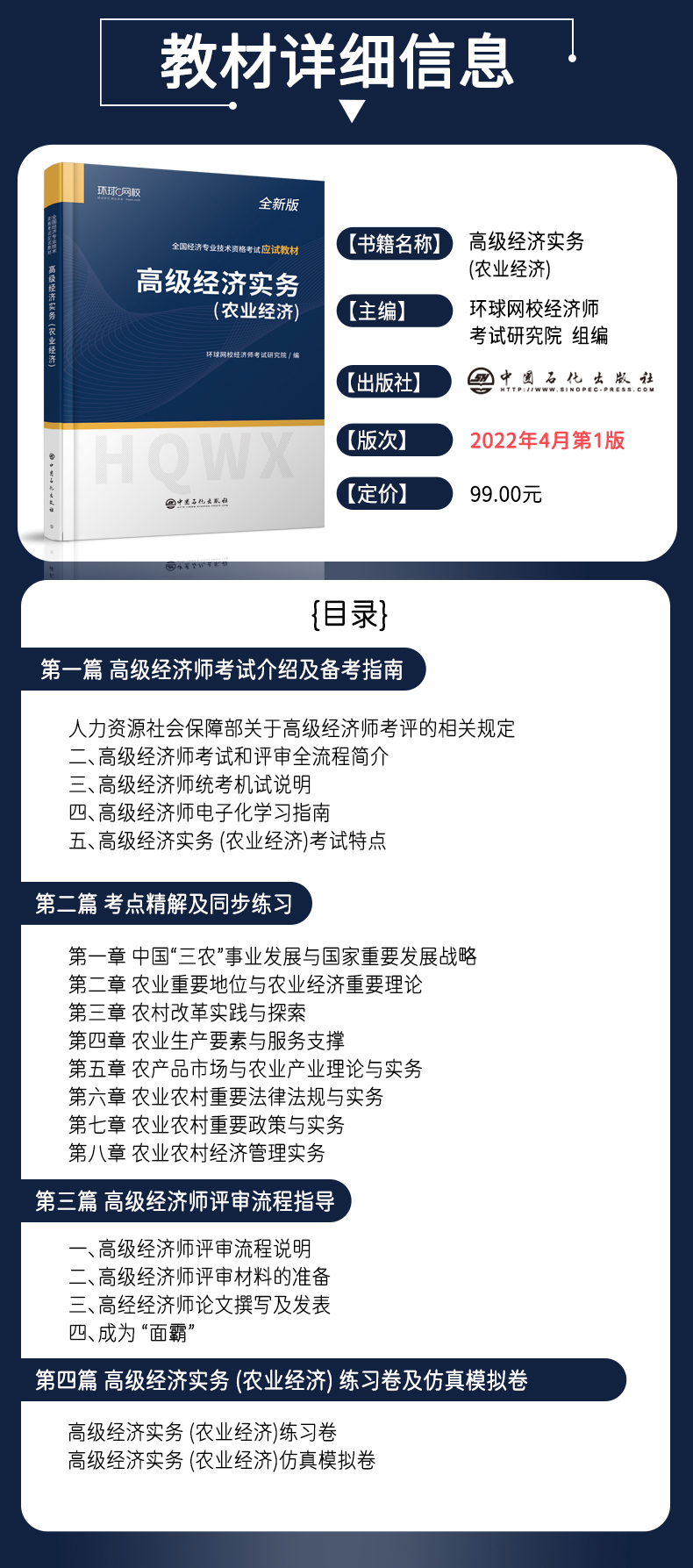 【旗舰店】高级经济师2022年教材高级经济实务 农业经济 全国经济专业技术资格考试应试教材 环球网校