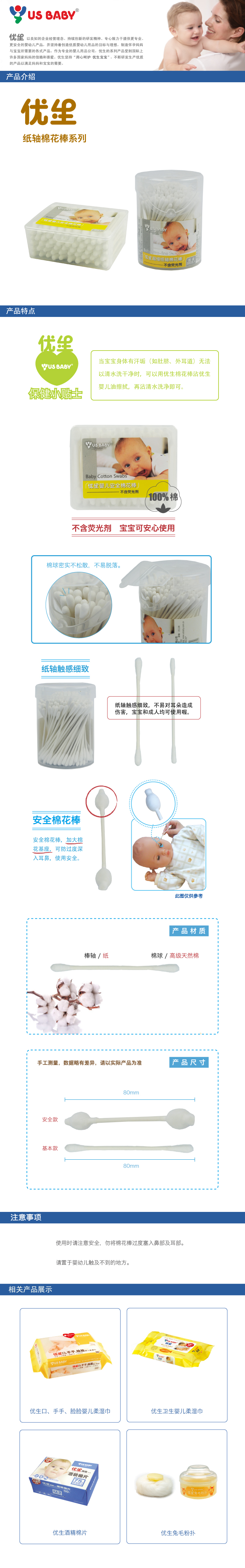 【优生】安全棉花棒方盒60支*1盒