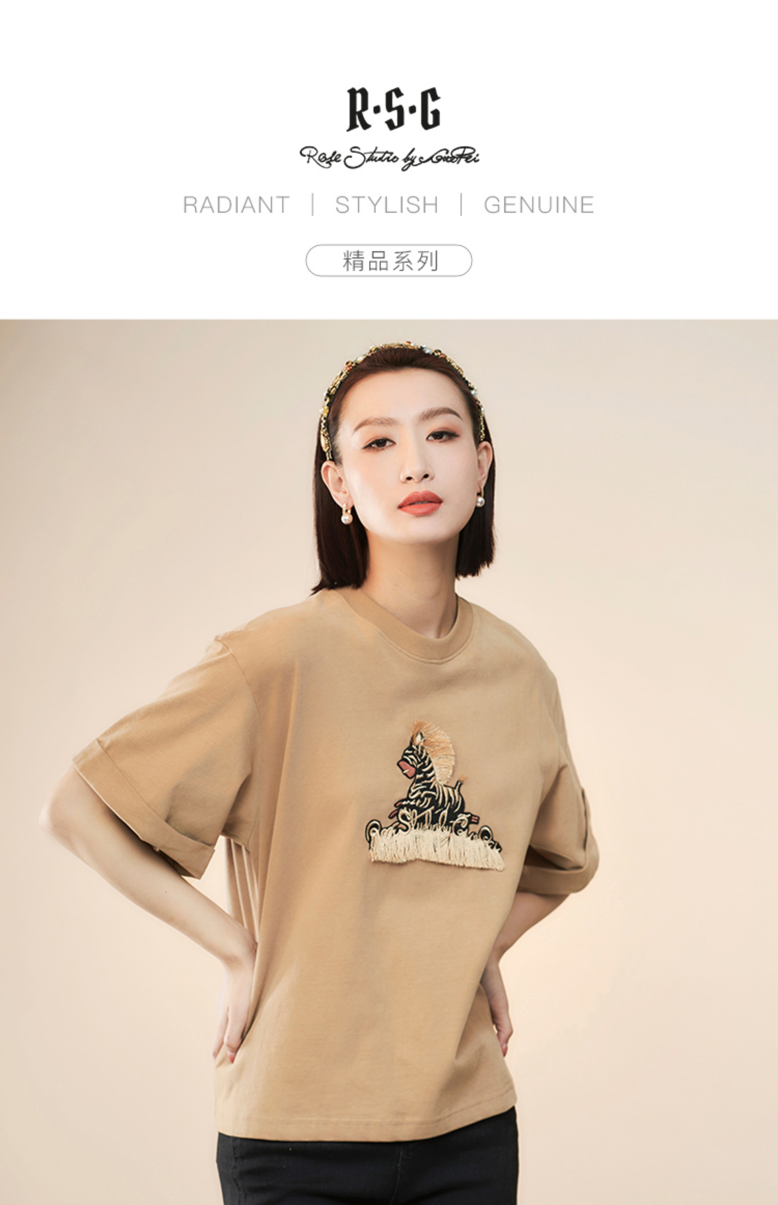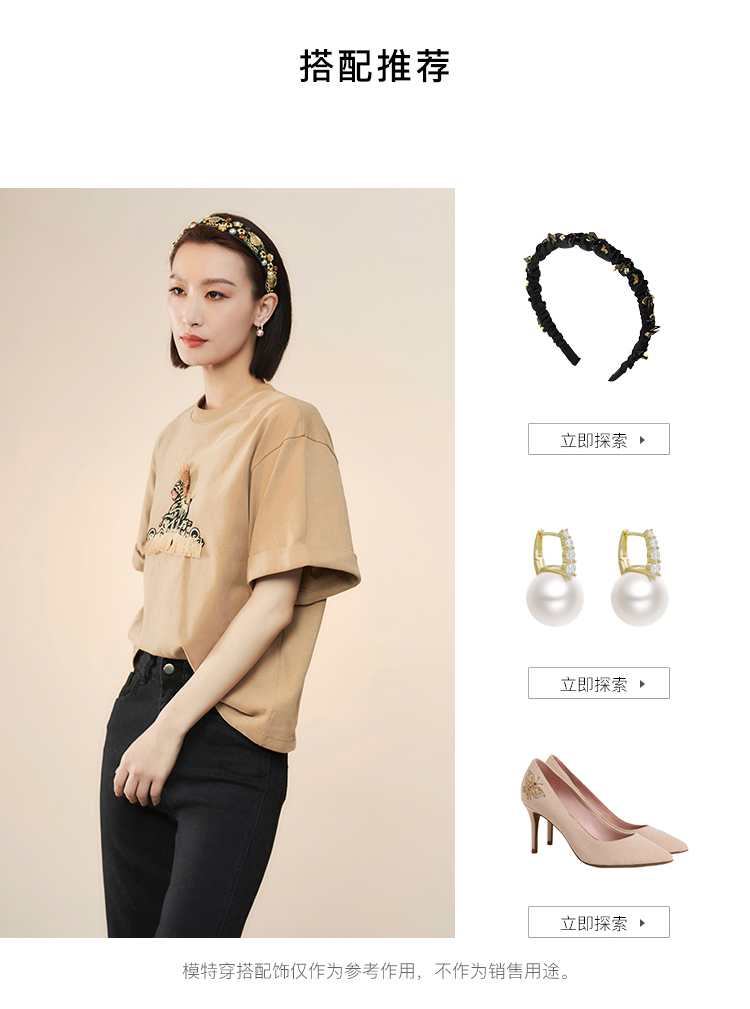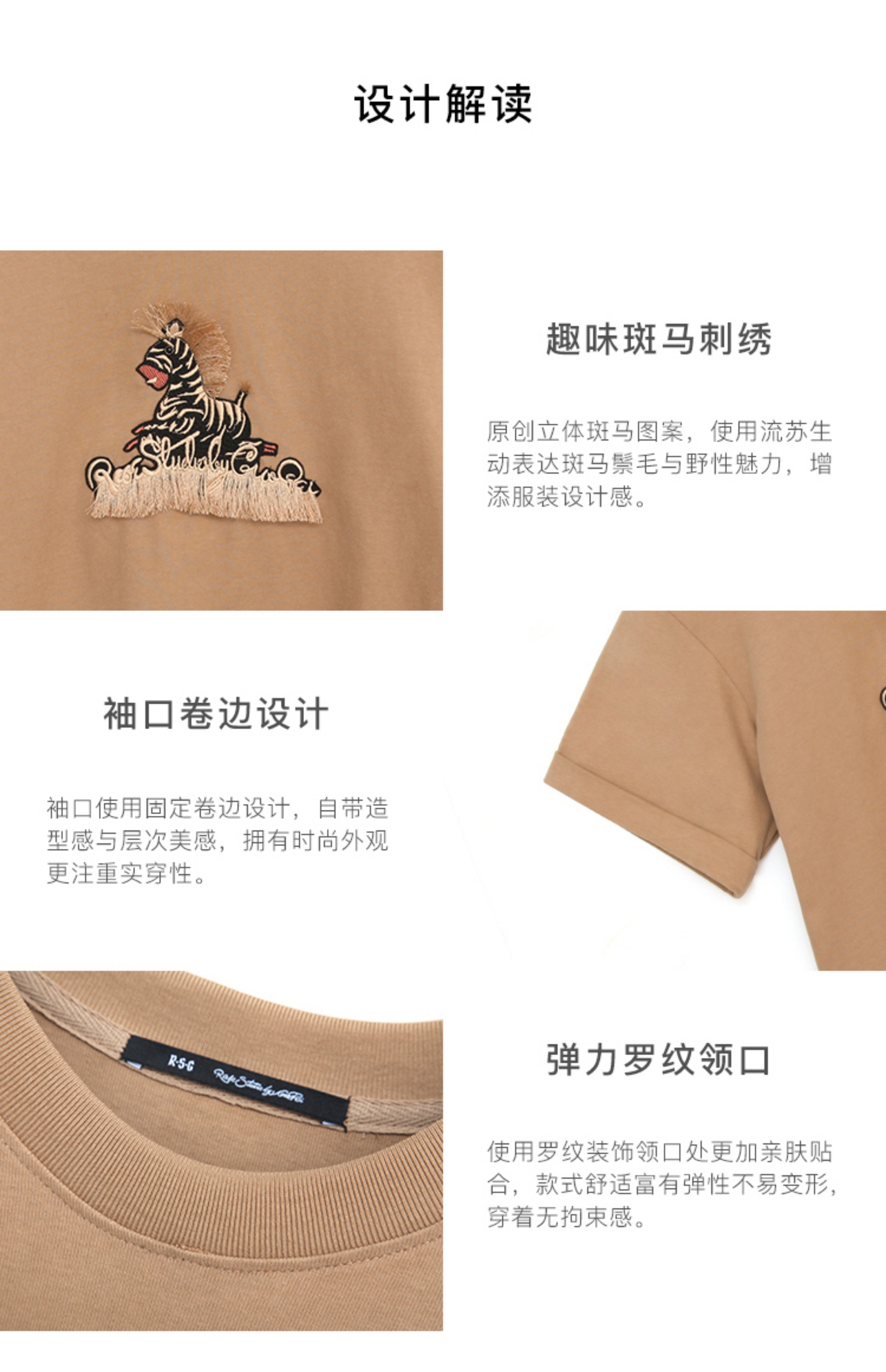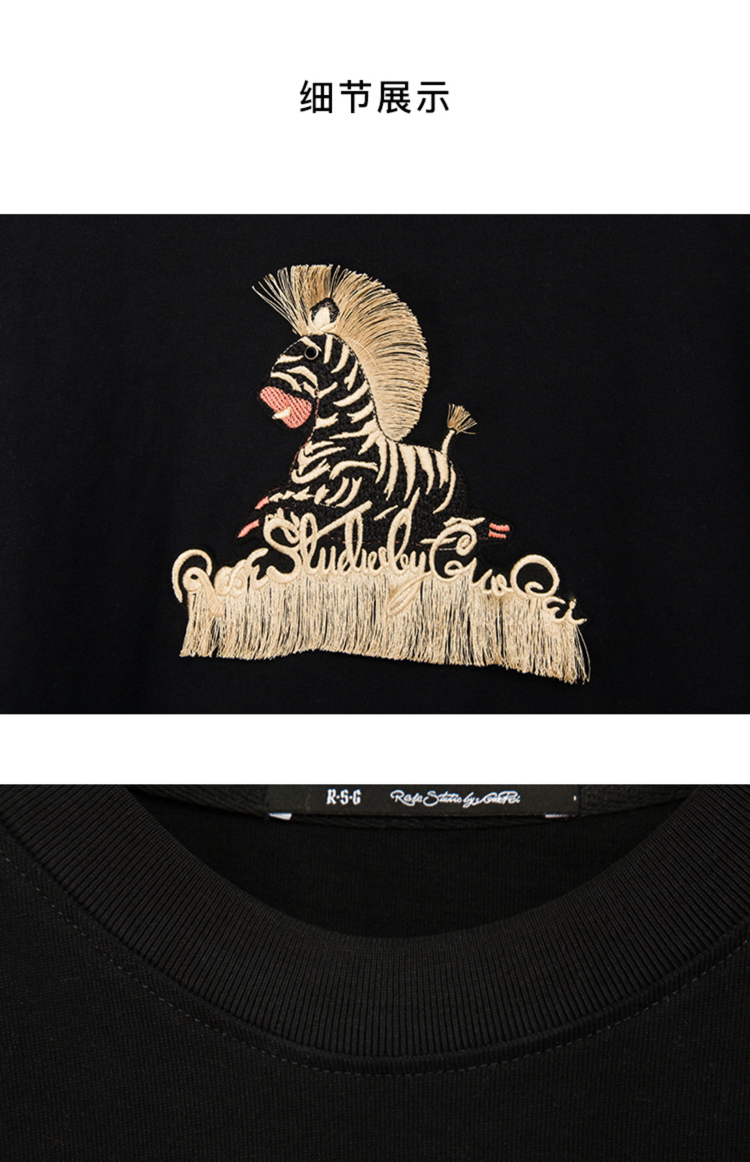 RSG郭培成衣品牌设计趣味斑马刺绣百搭款纯棉T恤上衣夏季新款