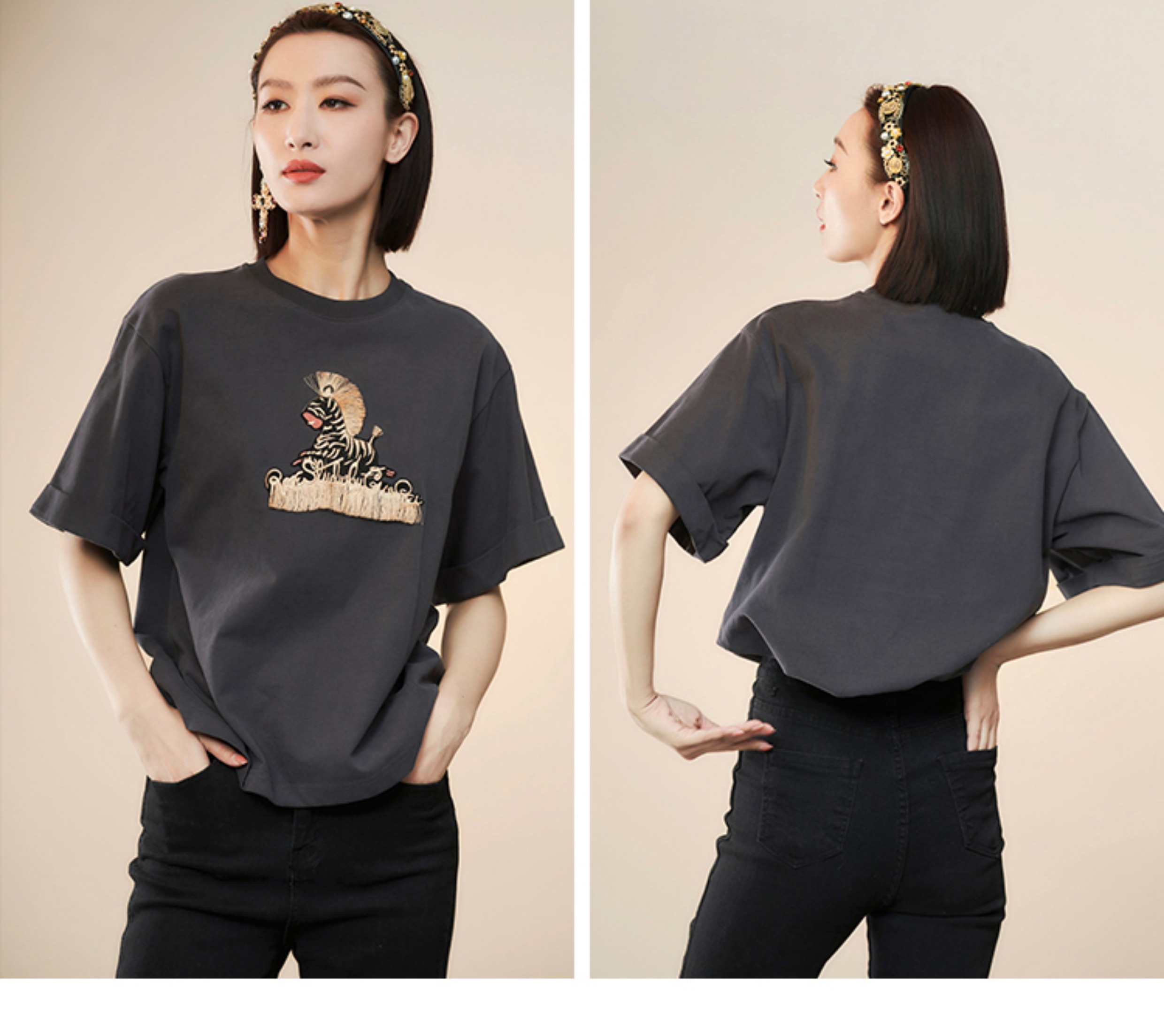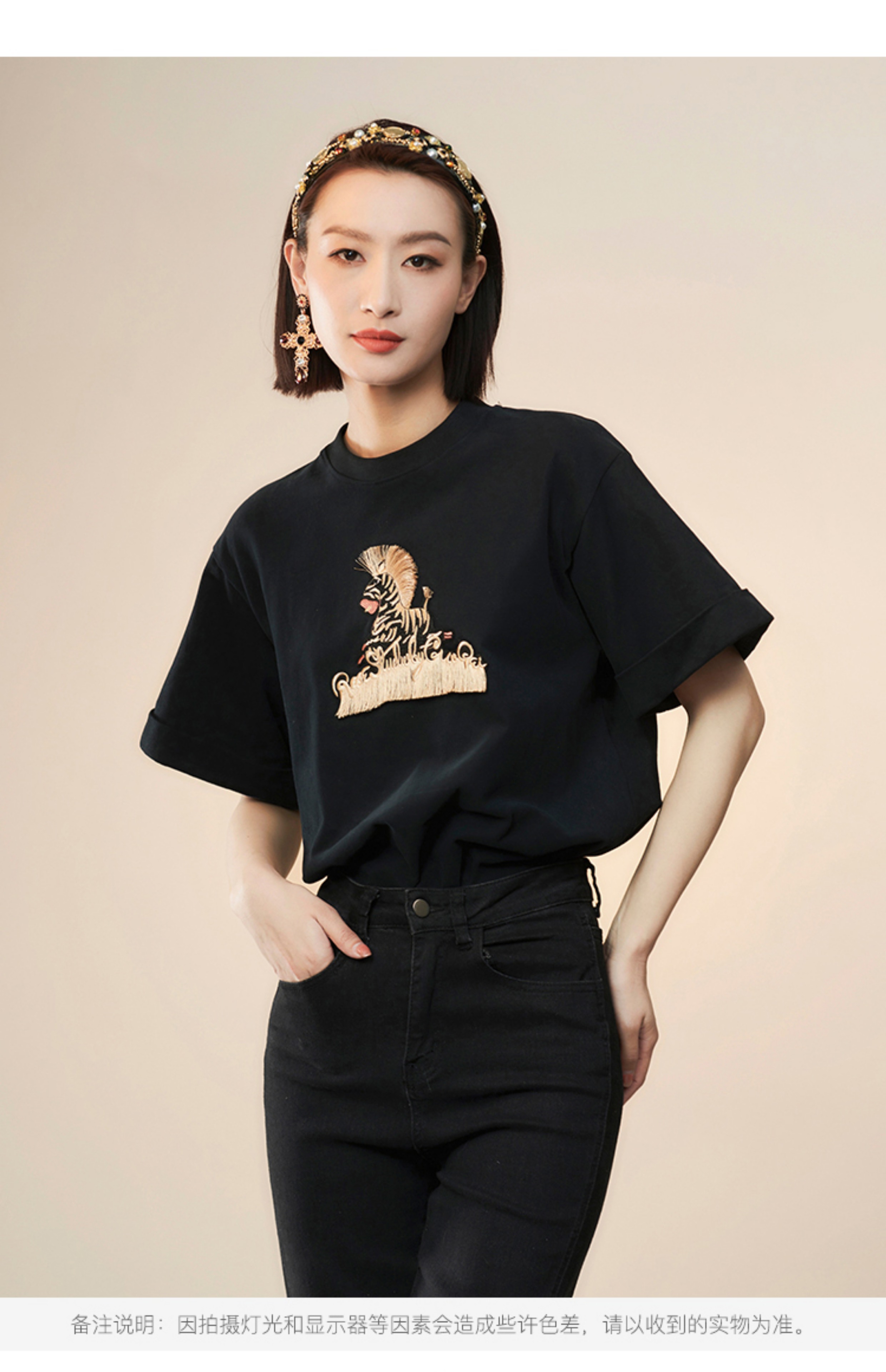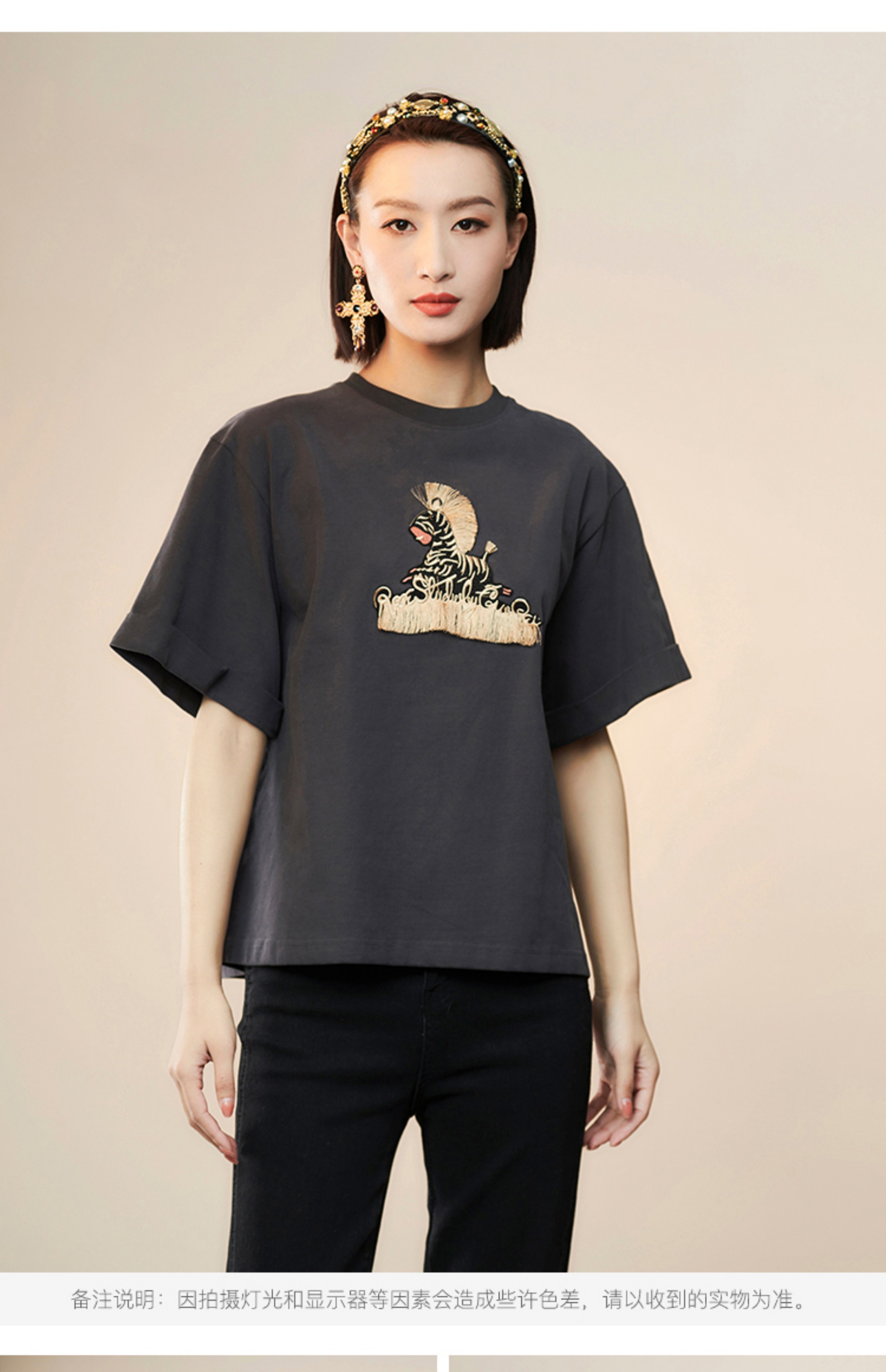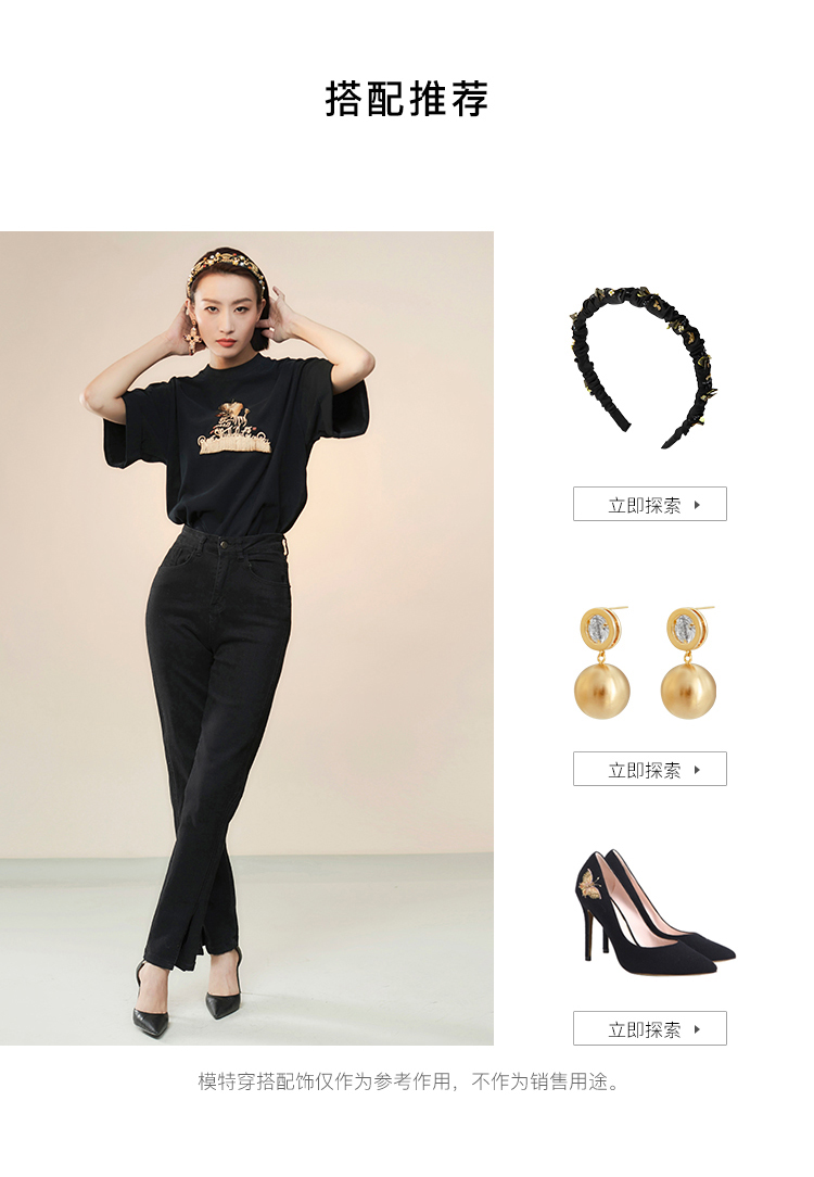 RSG郭培成衣品牌设计趣味斑马刺绣百搭款纯棉T恤上衣夏季新款