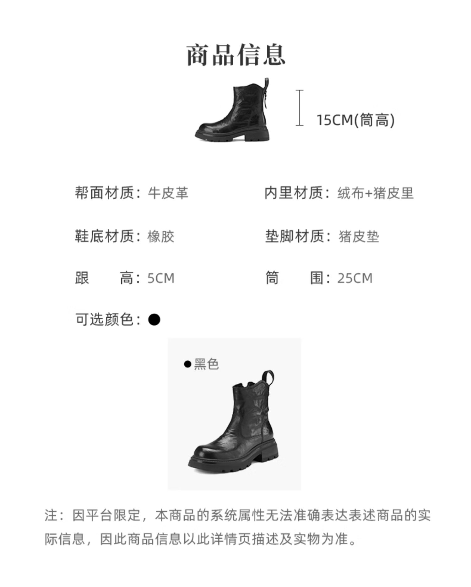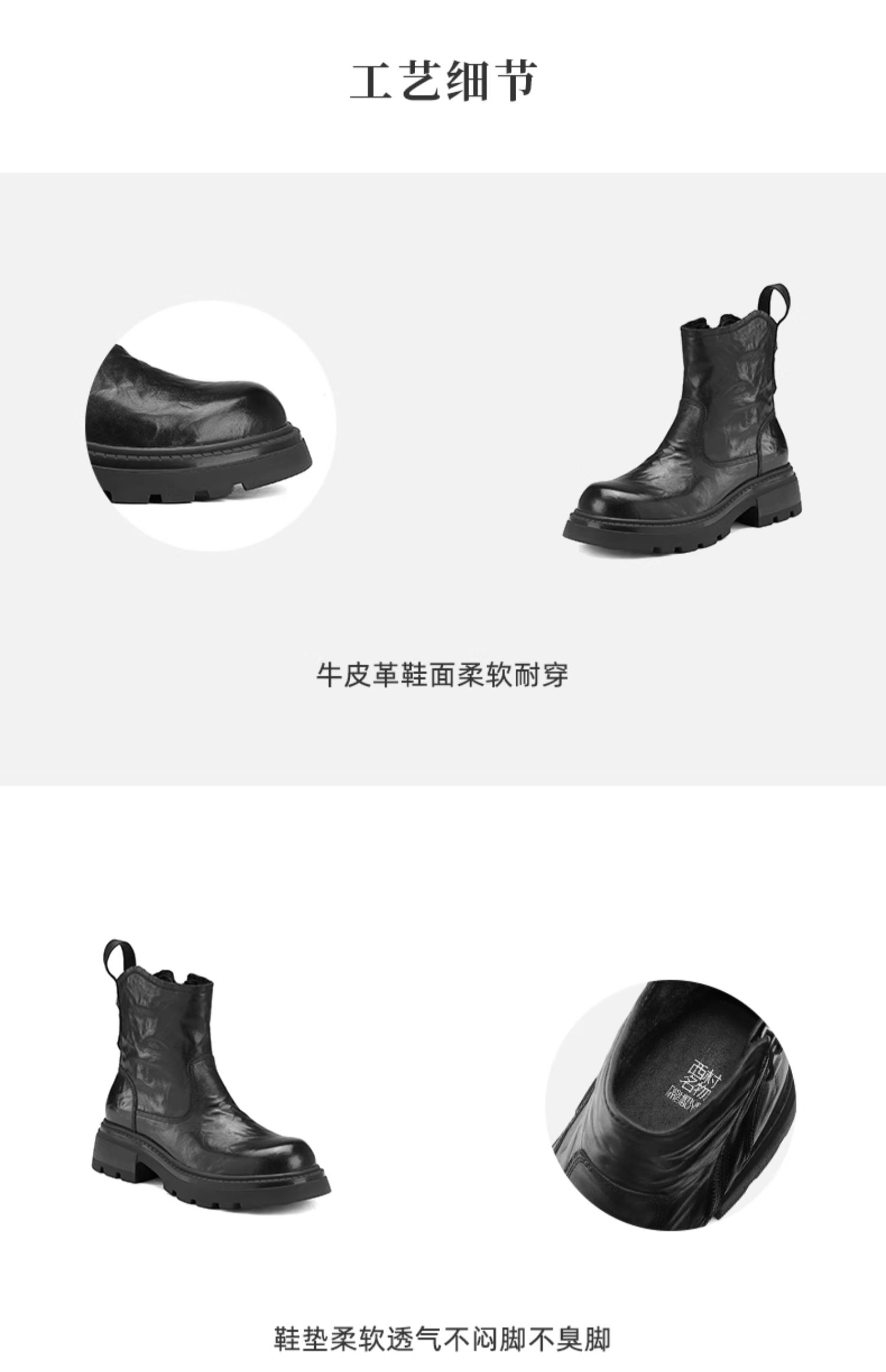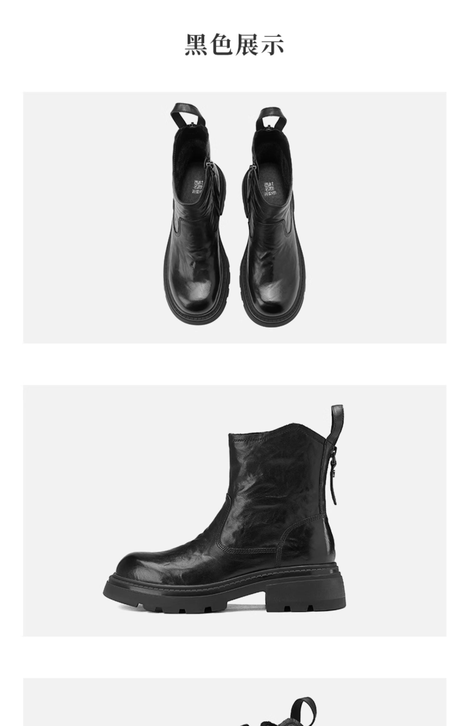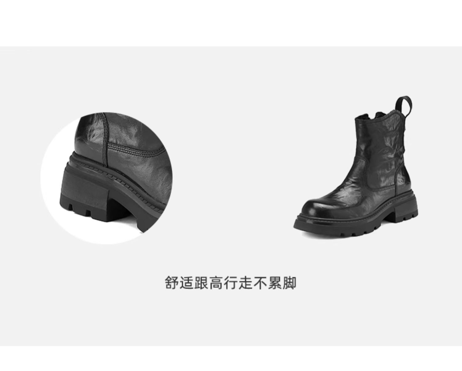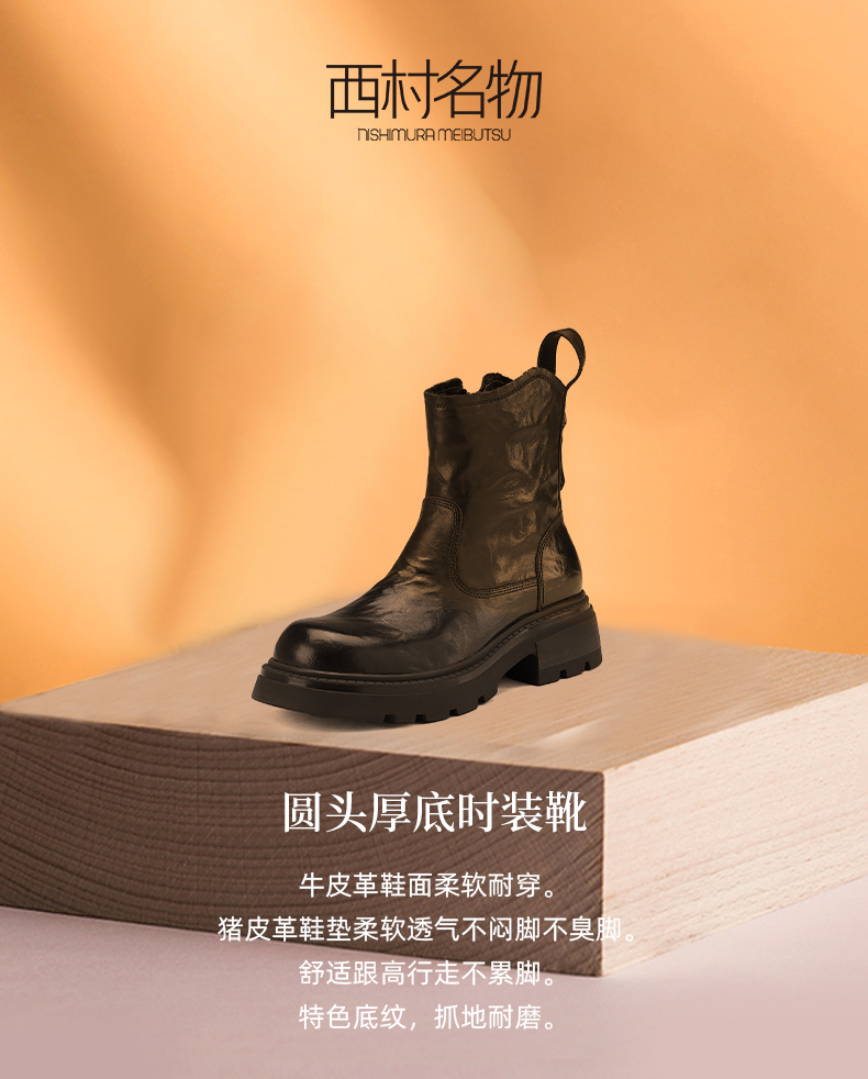 西村名物2024秋冬新款百搭圆头厚底粗跟侧拉链短筒时装靴女X24DS47341