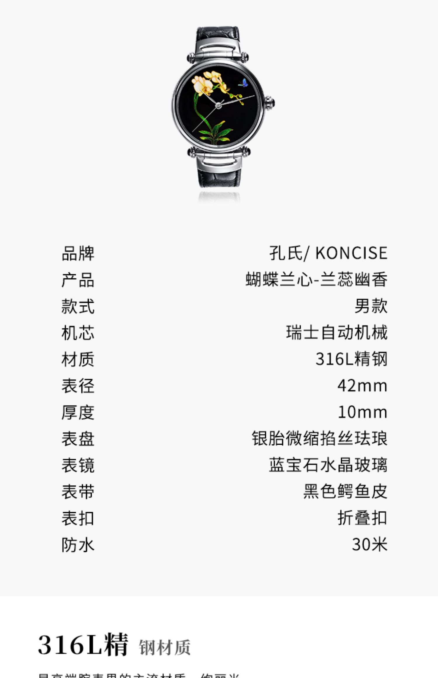KONCISE孔氏珐琅 蝴蝶兰心-兰蕊幽香 掐丝珐琅腕表