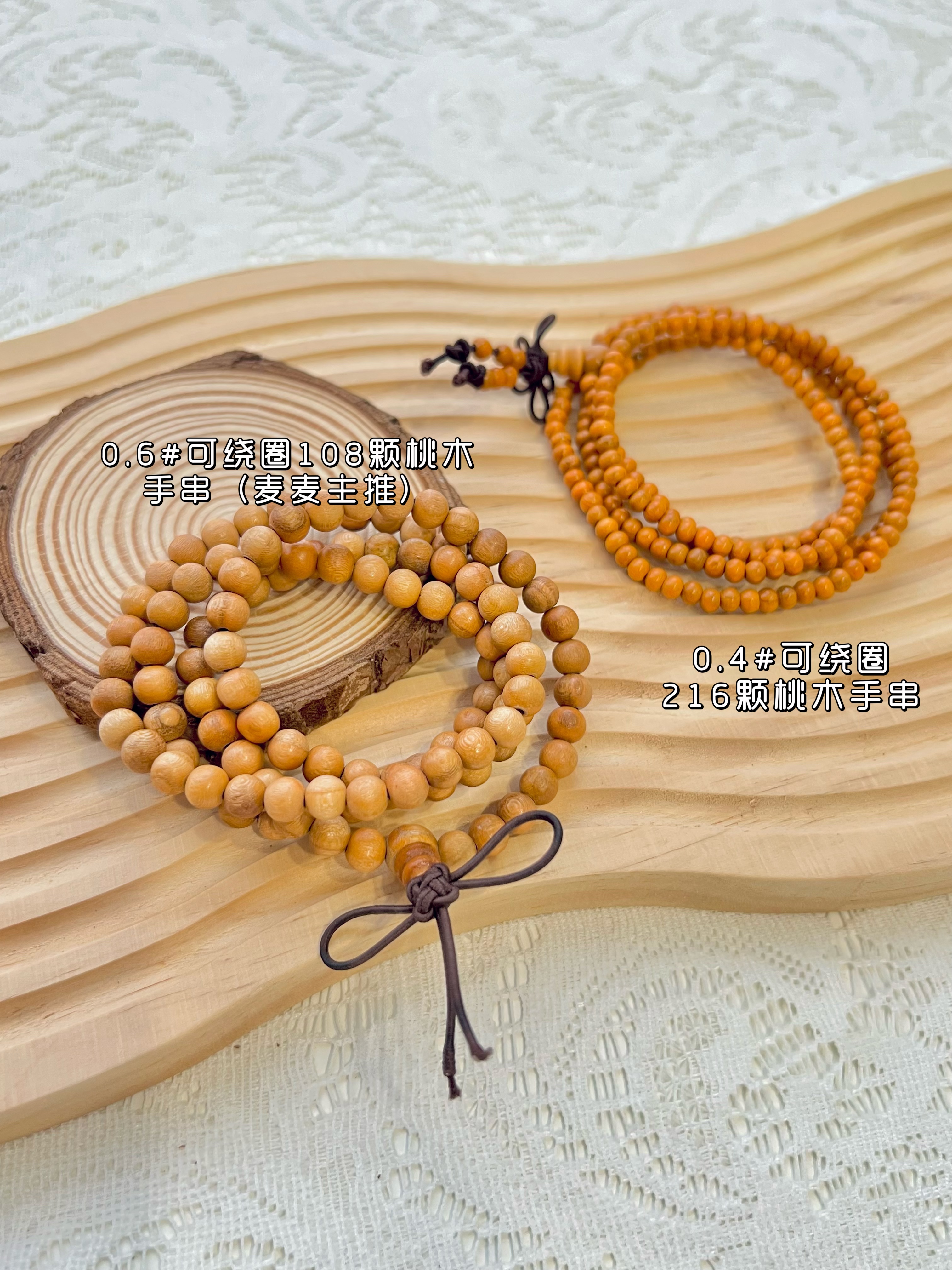 建议选择0.6-0.8的手串,0.6的手串有单圈和可绕圈两种选择,主要推荐可绕圈(108颗)会更加有风格;0.8的手串属于常规珠子,小个子小手的女生佩戴大小合适