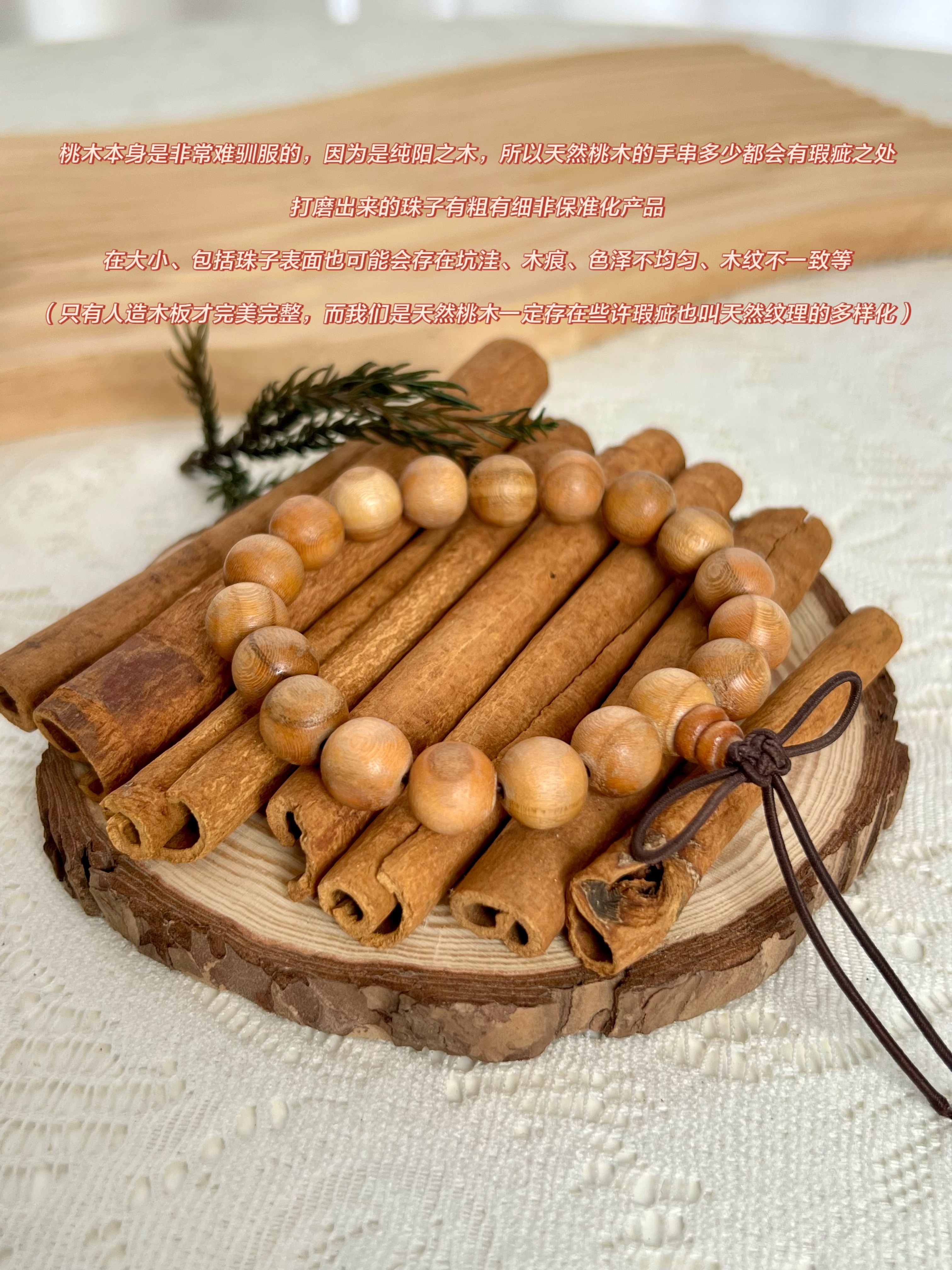 ●桃木本身是非常难驯服的,因为是纯阳之木,所以天然桃木的手串多少都会有瑕疵之处。打磨出来的珠子有粗有细非保准化产品,在大小、包括珠子表面也可能会存在坑洼、木痕、颜色深浅、色泽不均匀、木纹不一致等不做售后处理(只有人造木板才完美完整,而我们是天然桃木一定存在些许瑕疵也叫天然纹理的多样化)