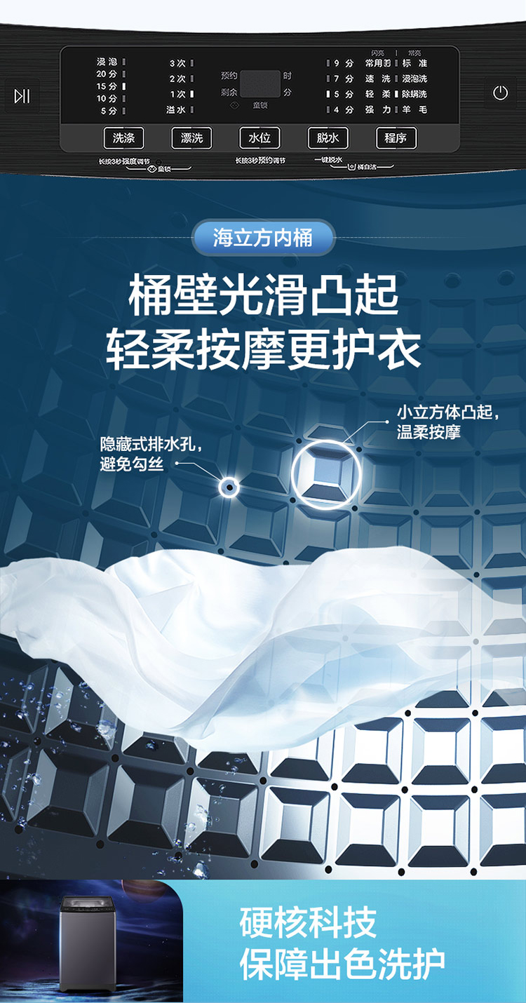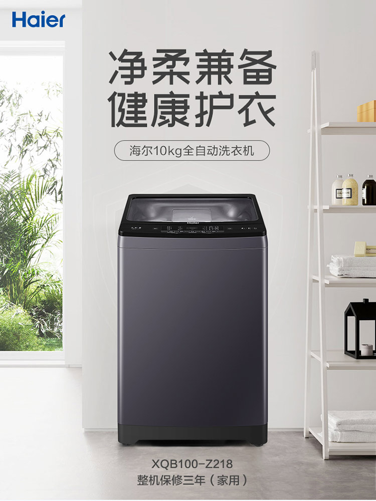 海尔(Haier)波轮洗衣十公斤全自动二级能效除螨洗智能自编程手搓漂甩合一XQB100-Z218