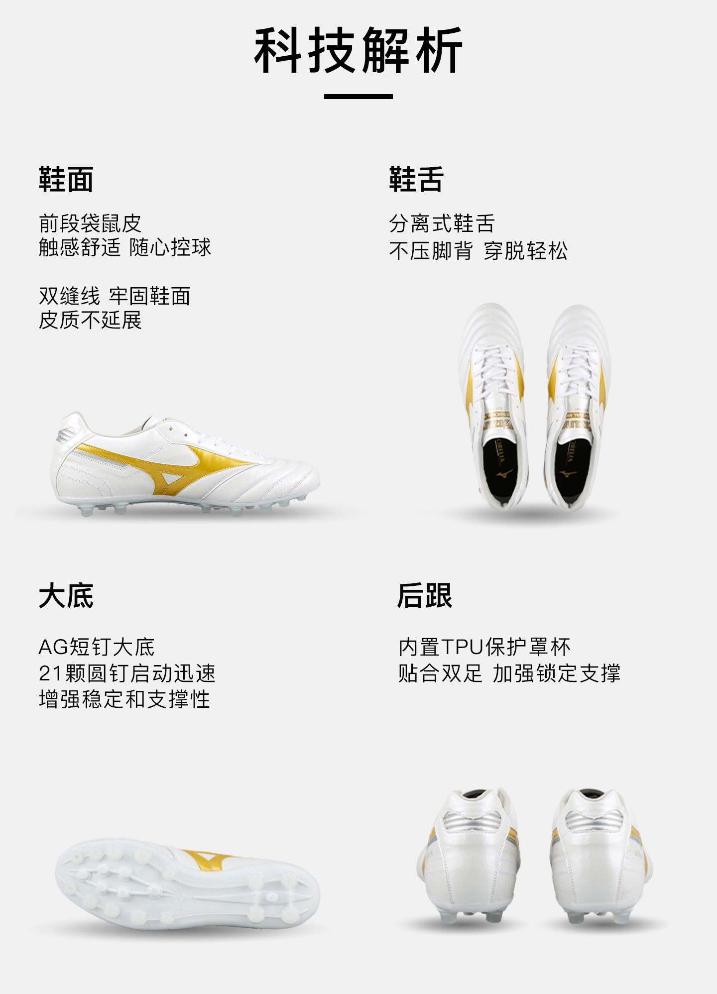 小李子Mizuno美津浓 莫雷拉Morelia 2 高端AG短钉袋鼠皮成人足球鞋男