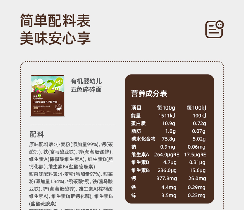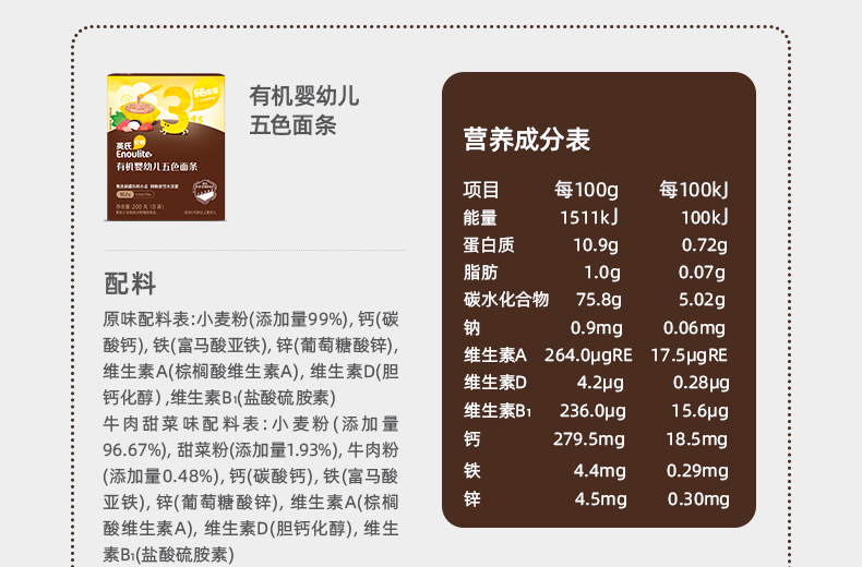 英氏忆格有机婴幼儿五色面200g
