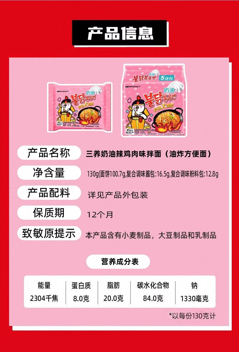 三养 超辣鸡肉味奶油拌面130g/袋