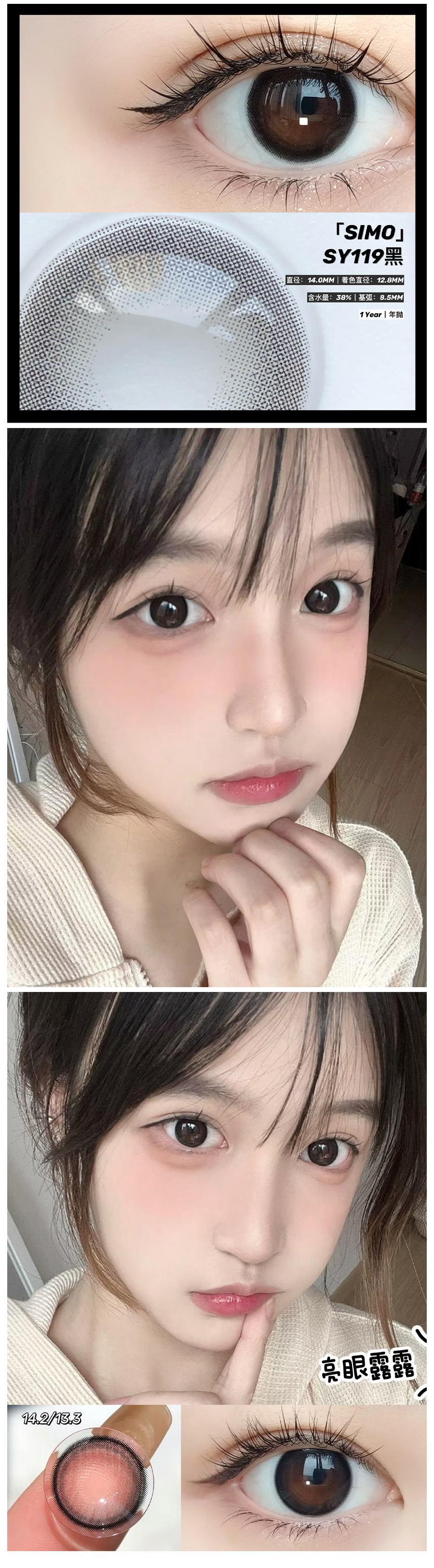 「2副均¥69」SIMO亮眼露露年抛│黑色减龄神器着色13.3mm 1副2片