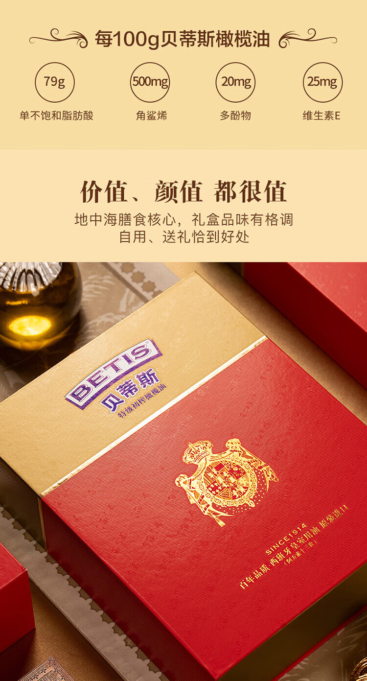 贝蒂斯(BETIS)特级初榨橄榄油 750ml*2瓶/礼盒