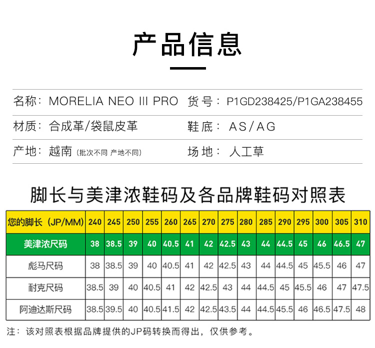 Mizuno/美津浓莫雷拉MORELIA NEO 3 PRO次顶AG短钉袋鼠皮成人足球鞋男P1GA238455