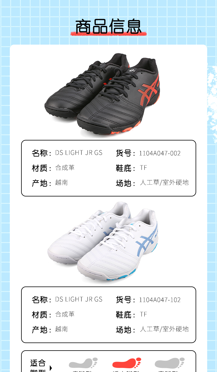 小李子亚瑟士儿童足球鞋TF碎钉学生校园专用训练球鞋比赛男孩人草