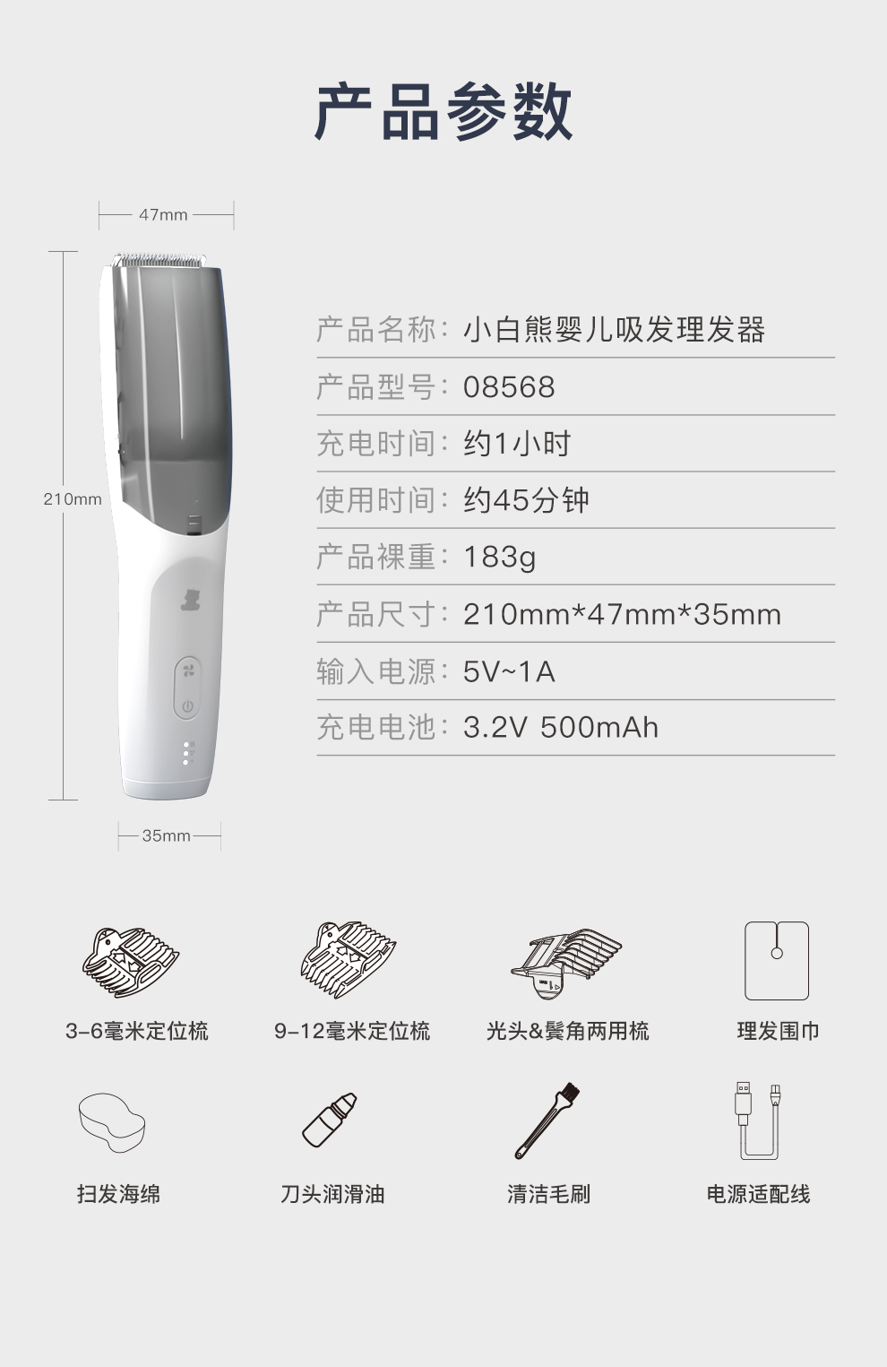 小白熊婴儿理发器-吸发款