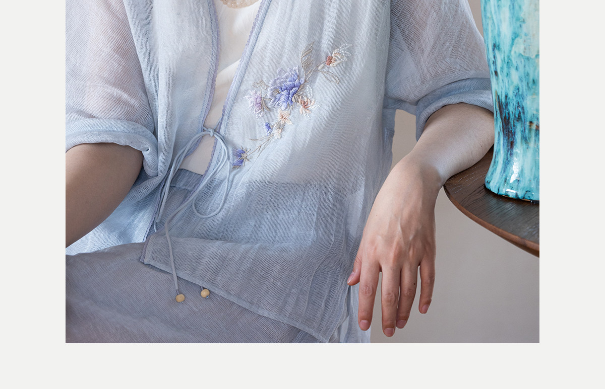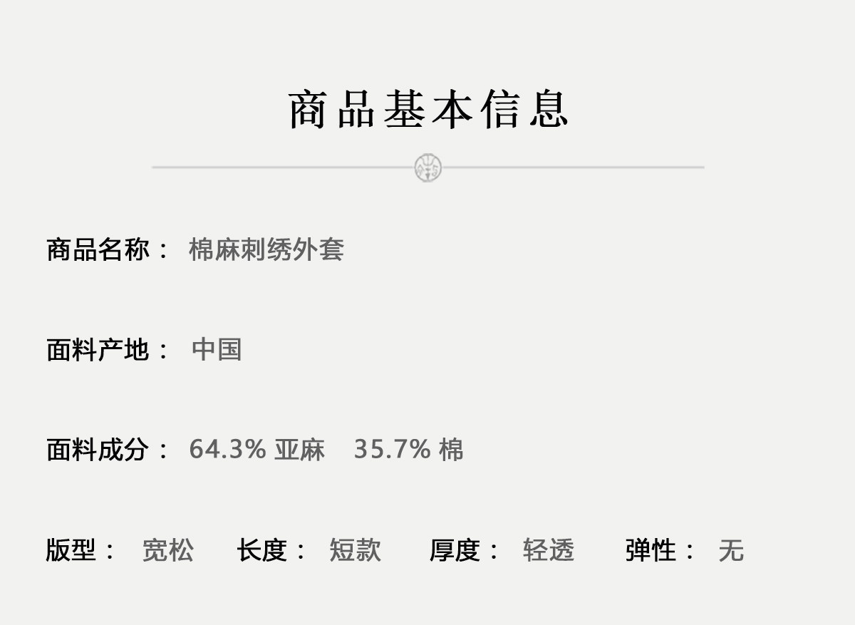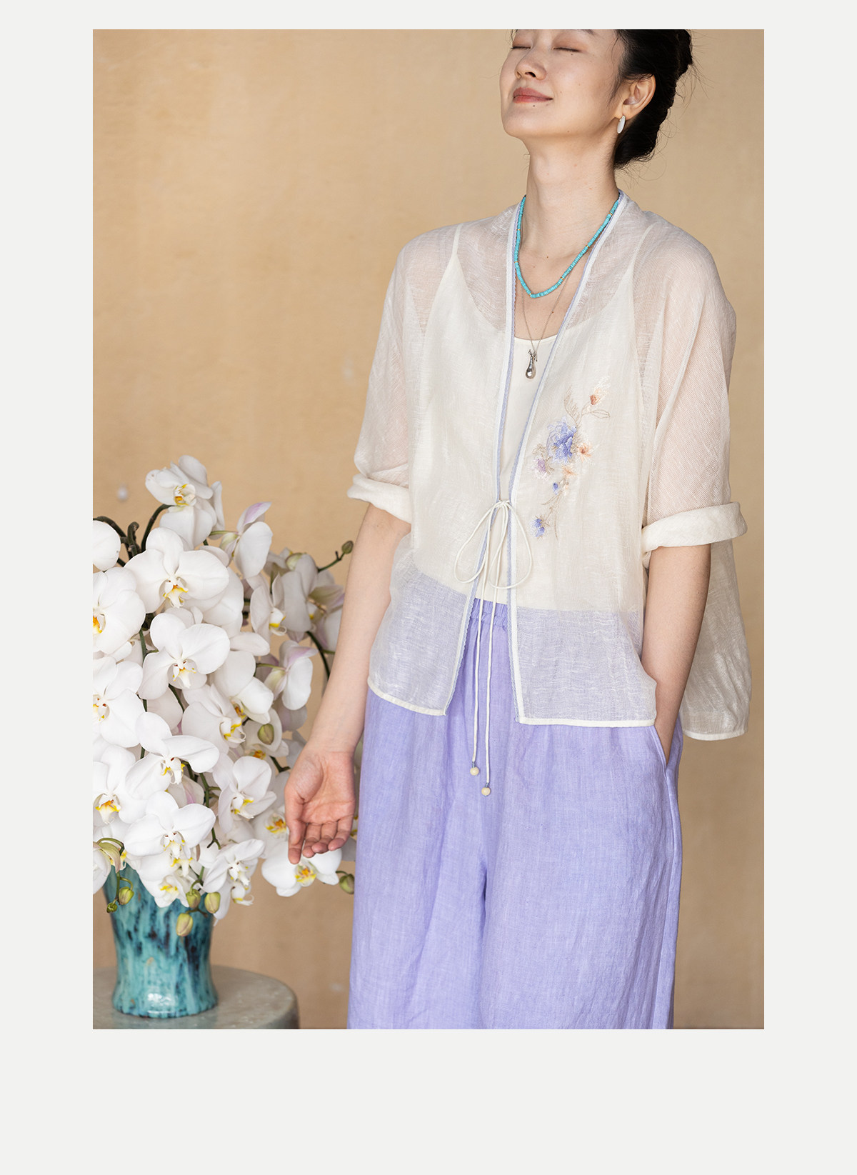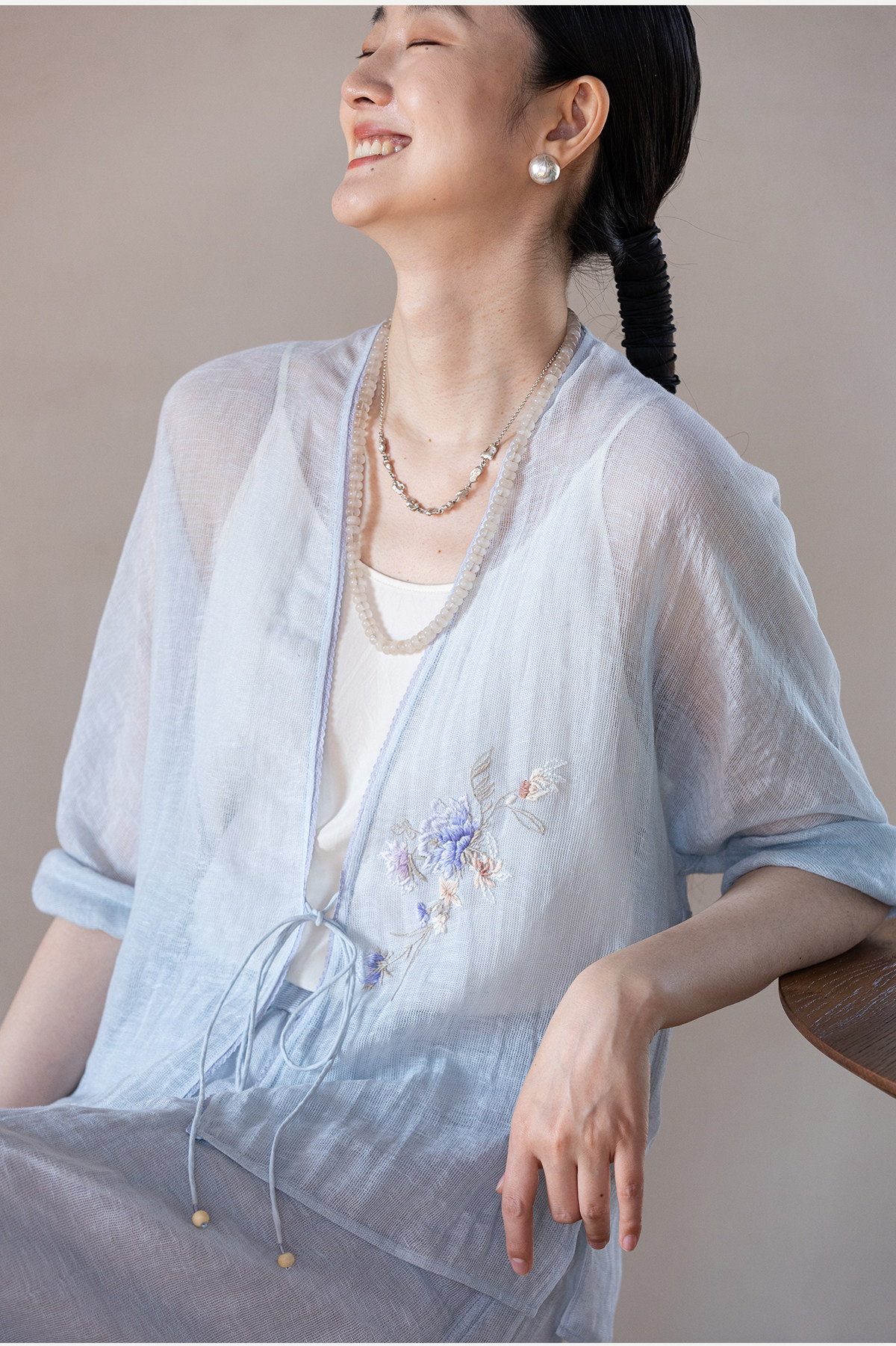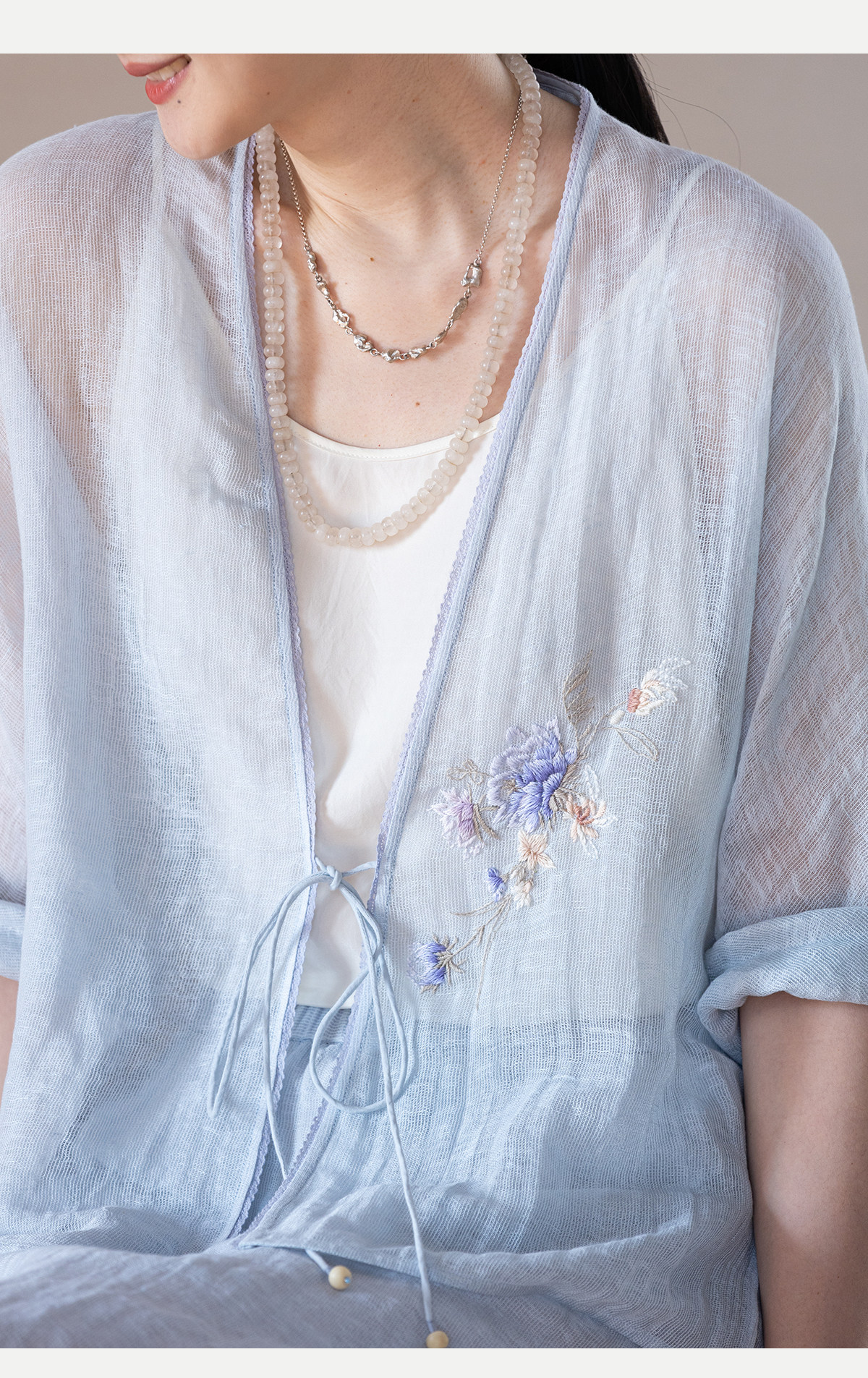 牧衣游原创 棉麻手工刺绣外套女新款轻薄文艺系带防晒开衫 乐岛