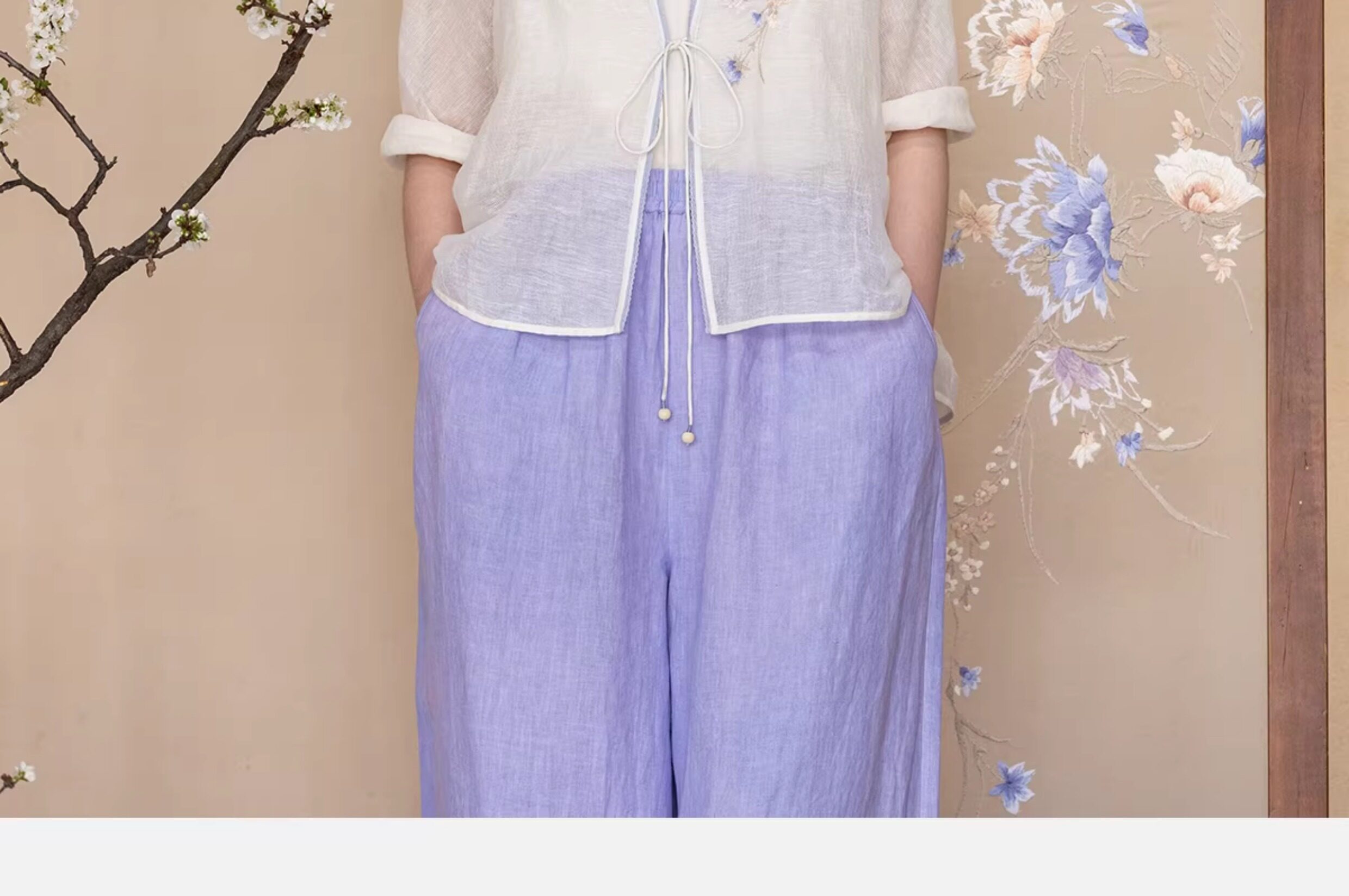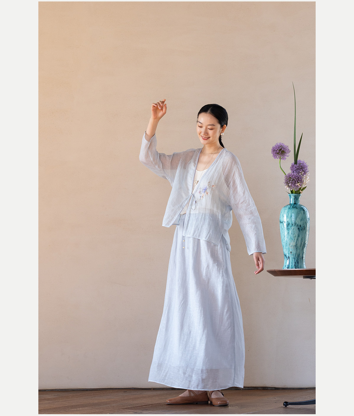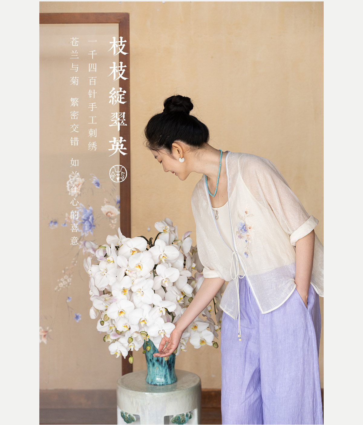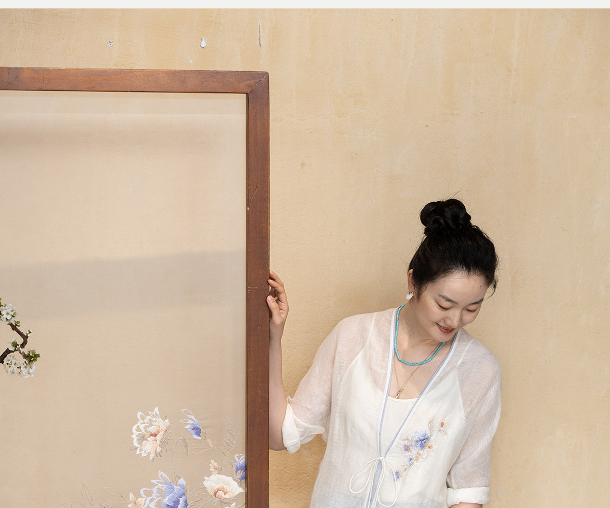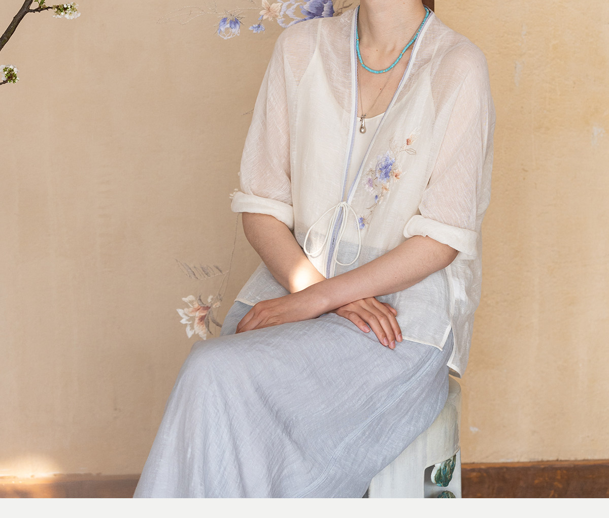 牧衣游原创 棉麻手工刺绣外套女新款轻薄文艺系带防晒开衫 乐岛