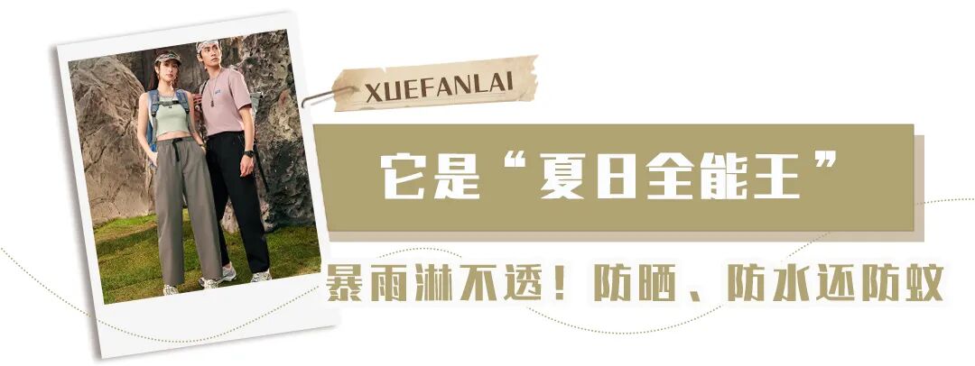 凉感、防水、防晒、防蚊虫入侵,还是男女通吃的款式!