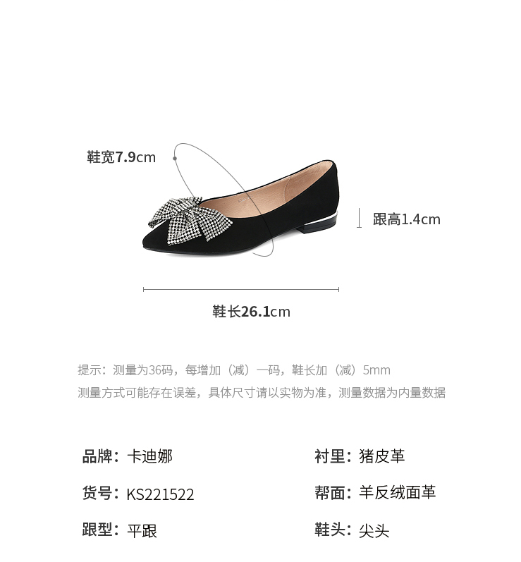 哈森女鞋卡迪娜2022年春季新款尖头平跟舒适时装鞋单鞋女KS221522