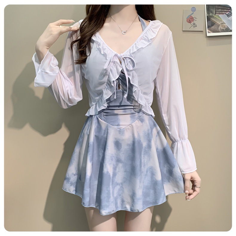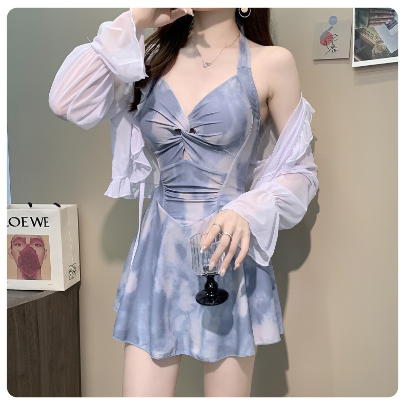 泳衣女款2025年新款纯欲风感连体游泳衣女士遮肚显瘦长袖
