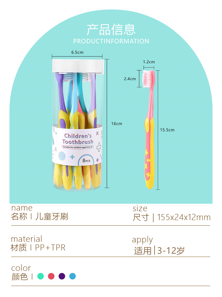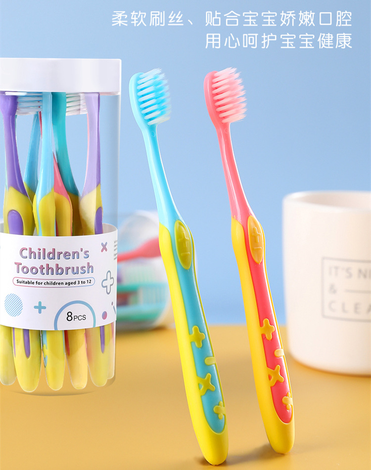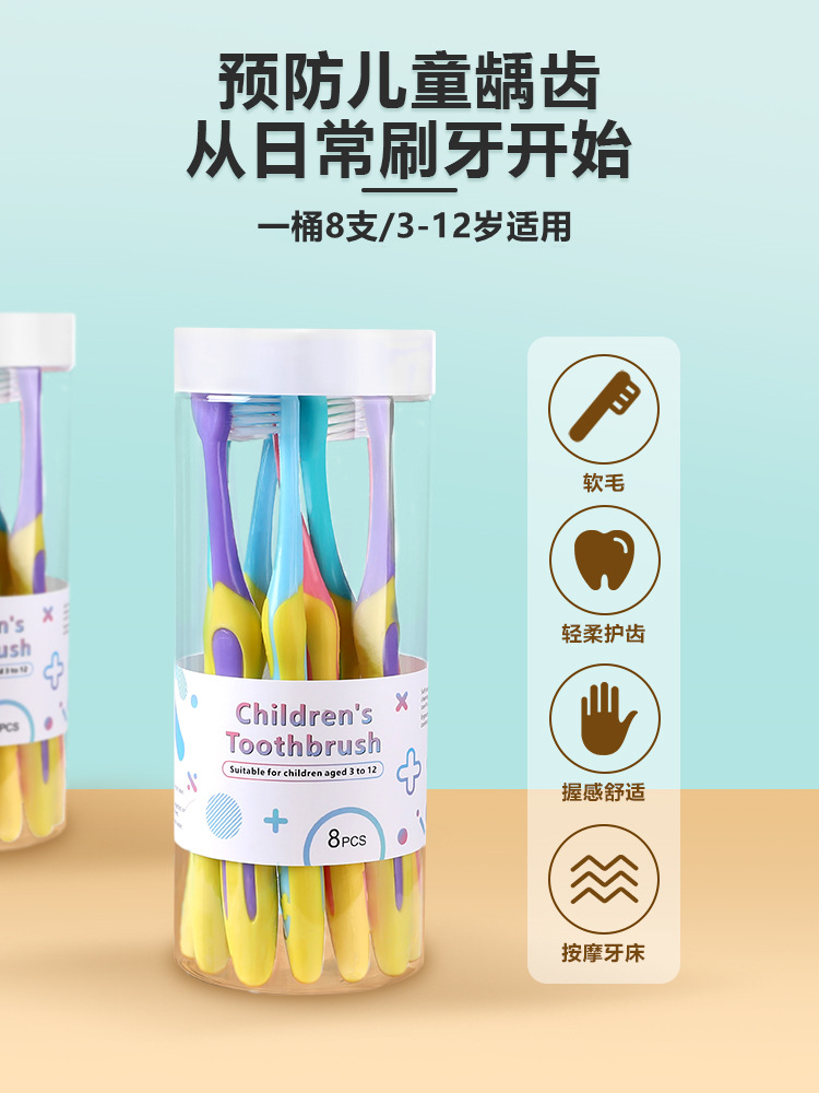 「8支桶装!9.9元包邮」小孩小学生中大童3-6-9-12岁儿童牙刷软毛宝宝洗护