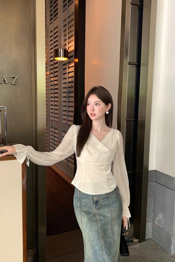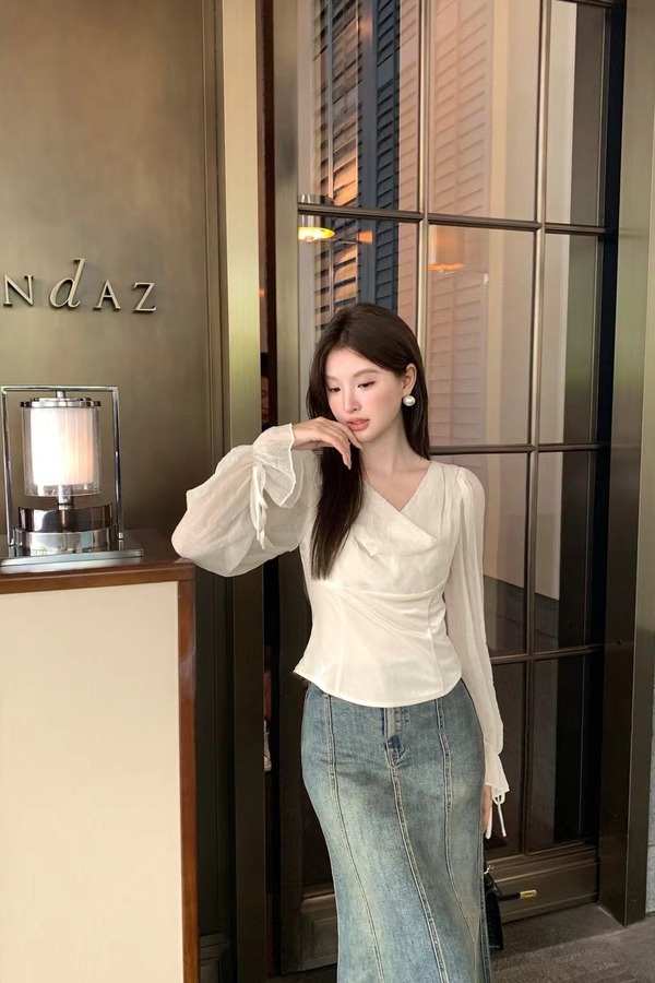 SIA SAYLOR 领口褶皱优雅气质上衣 20764