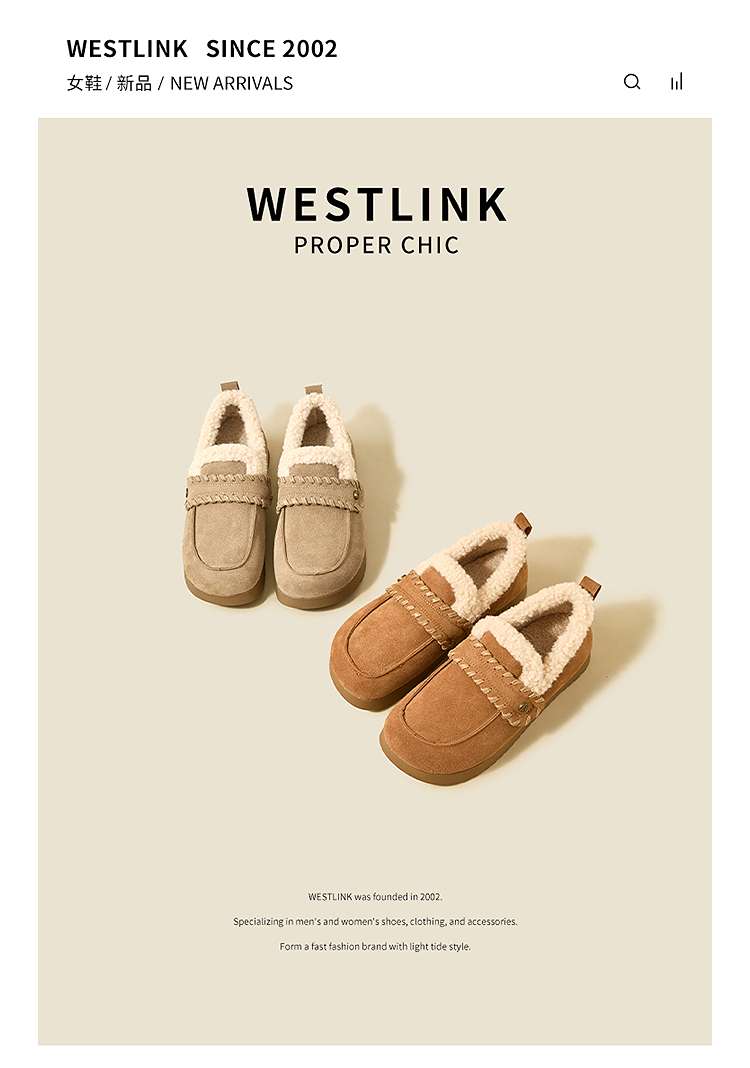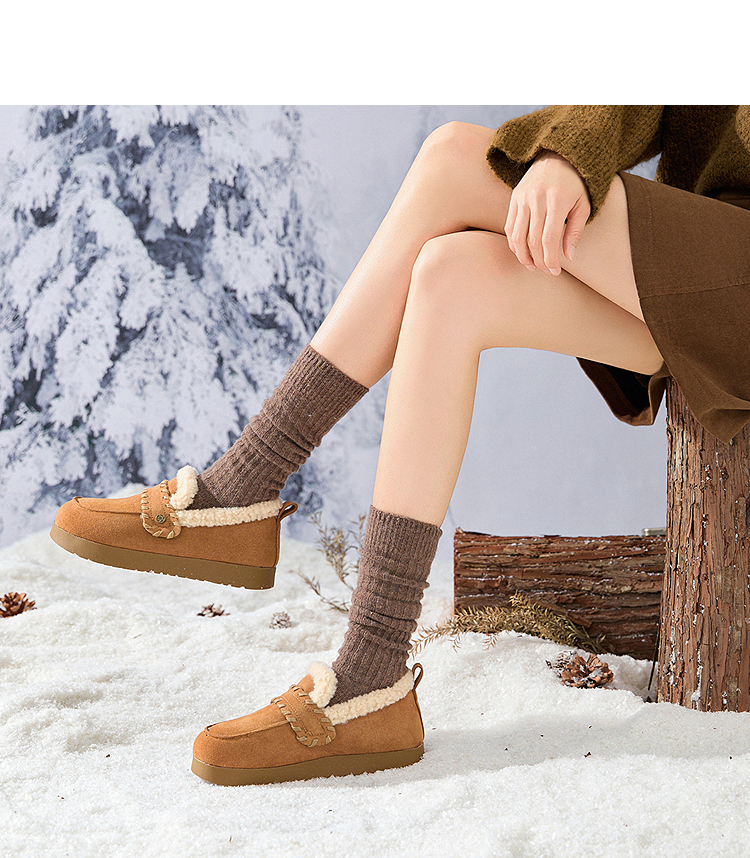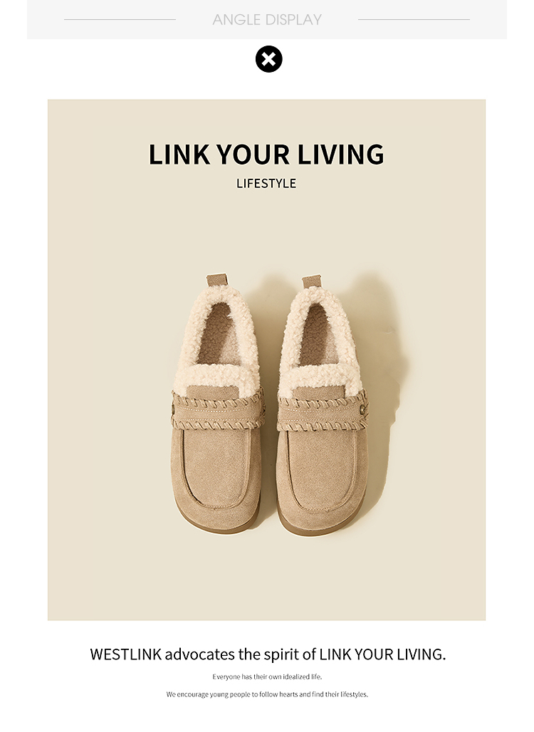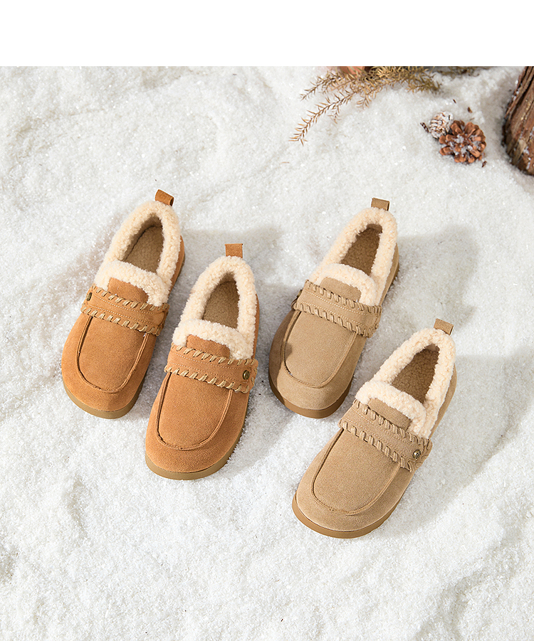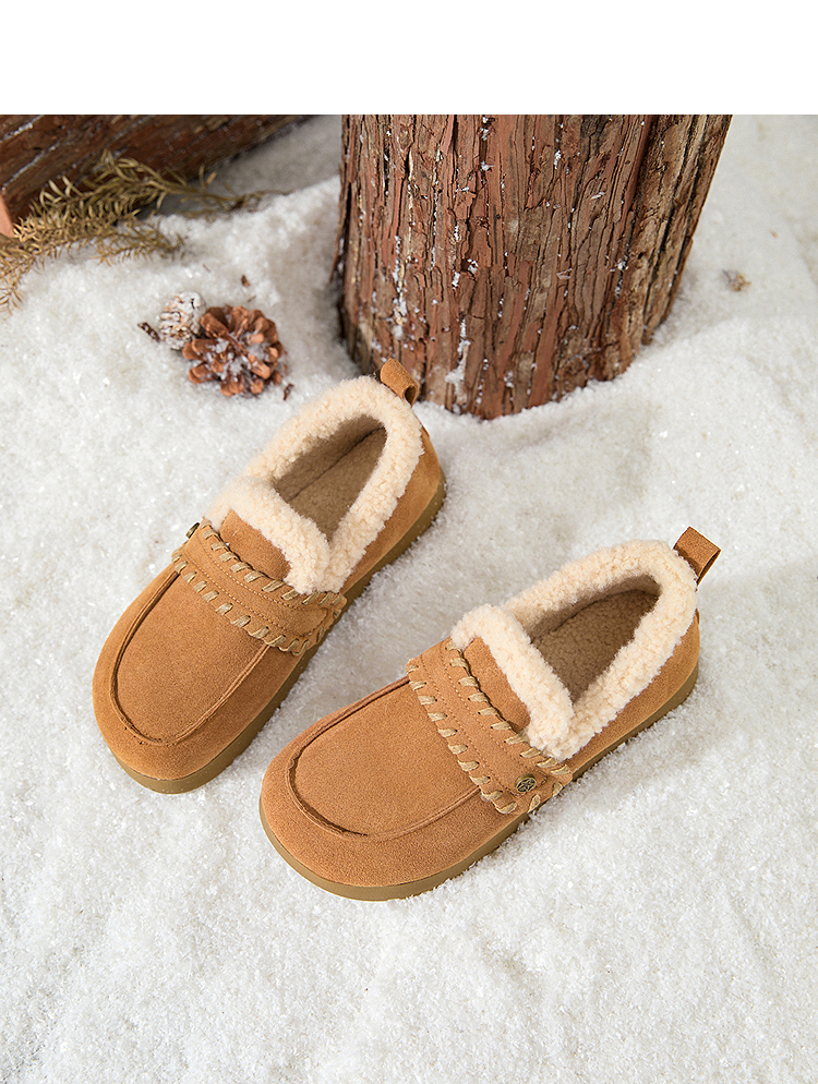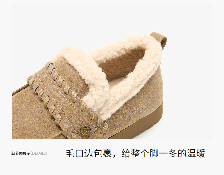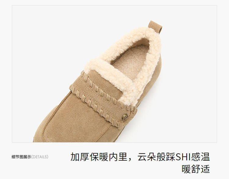 西遇全包加绒勃肯鞋女新款秋冬保暖外穿棉鞋软底毛毛乐福鞋V2257294