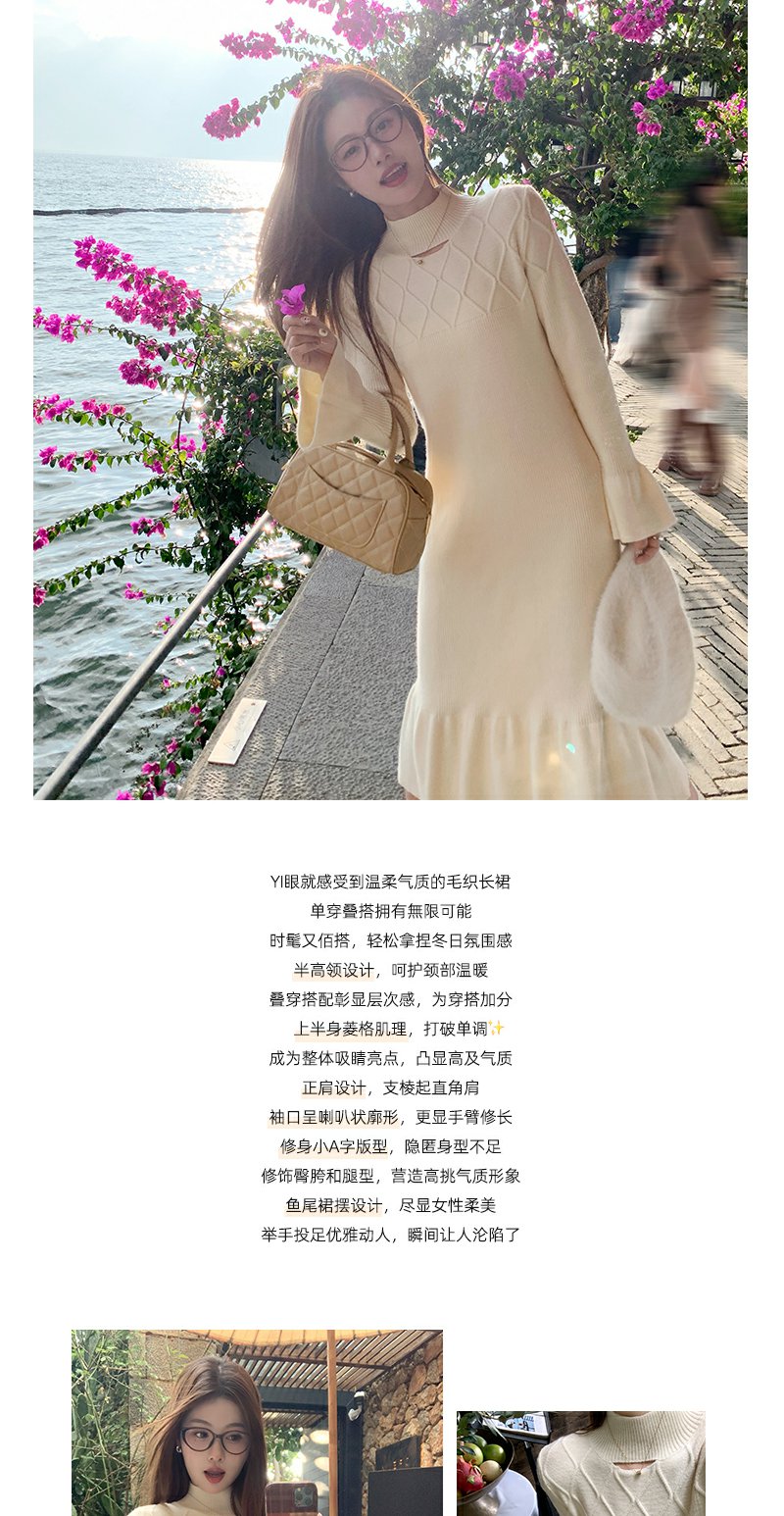 <曾小咸推荐>杏色镂空领毛织连衣裙 日常229.99/件 立减130 秒杀99.99/件!!