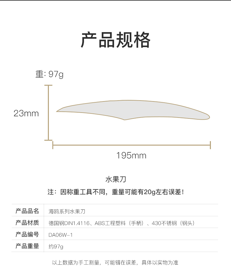 拓 海鸥水果刀家用不锈钢瓜果刀削皮刀厨房刀具德国进口钢小刀果蔬刀
