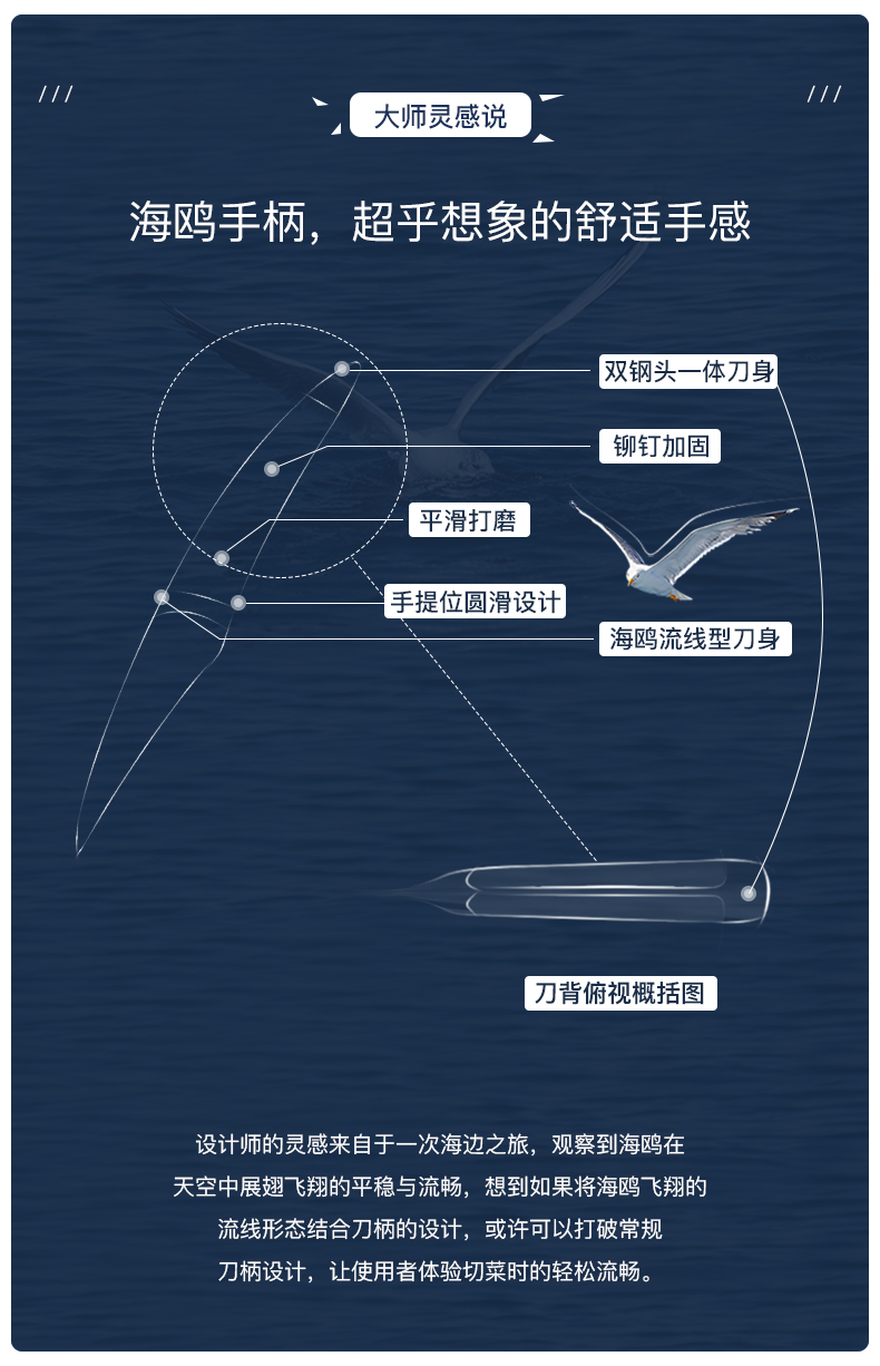 拓 海鸥三德刀家用防粘小菜刀不锈钢三德刀厨房菜刀西式多功能切肉厨刀