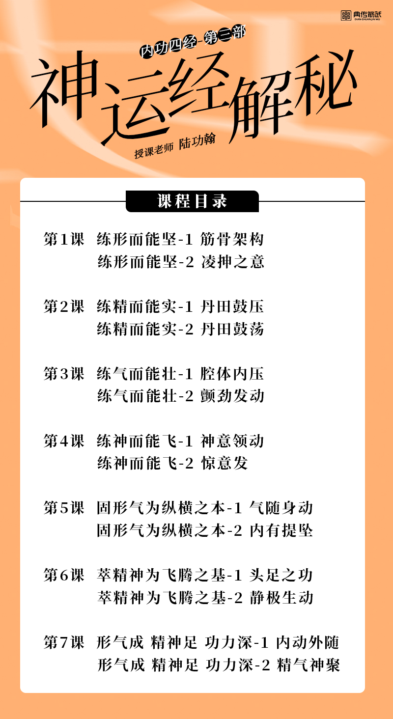 典传筋骨,传承于中华武术训练体系最精华部分,与解剖学、人体力学等科学理论相融合,致力于人体筋骨结构的内在开发与强化,为健康打下坚实基础。