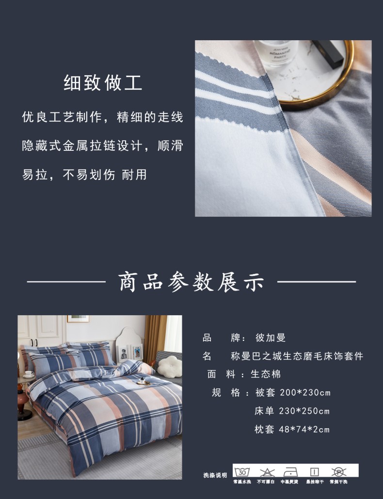 【自营】彼加曼 BGM-T2263 “曼巴之城”生态磨毛床饰套件 200*230cm