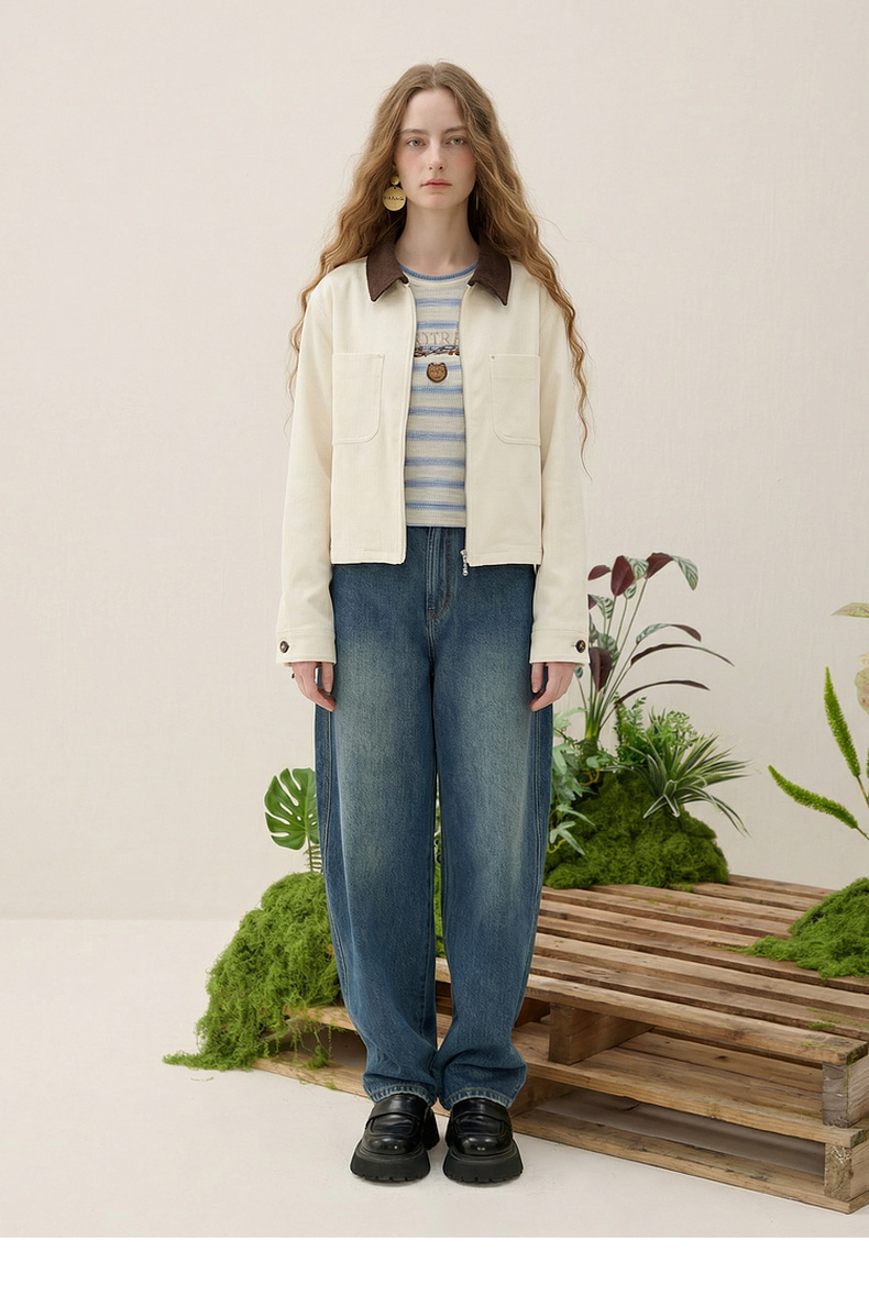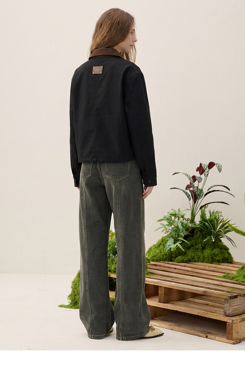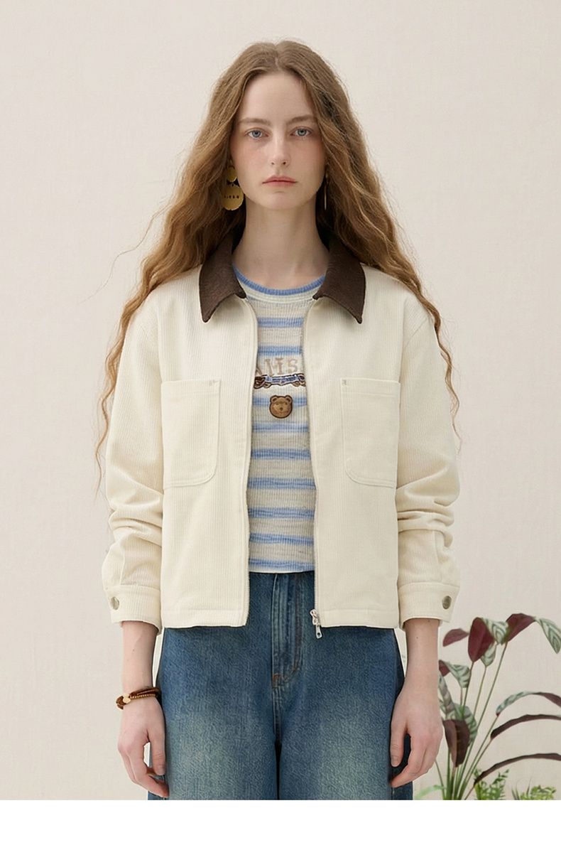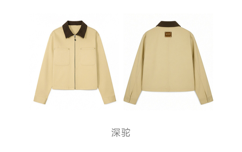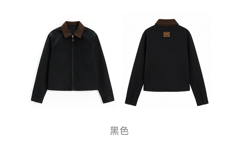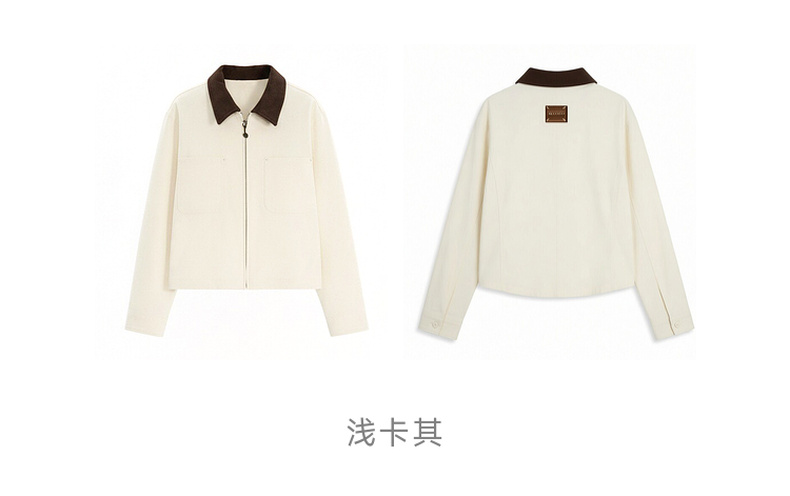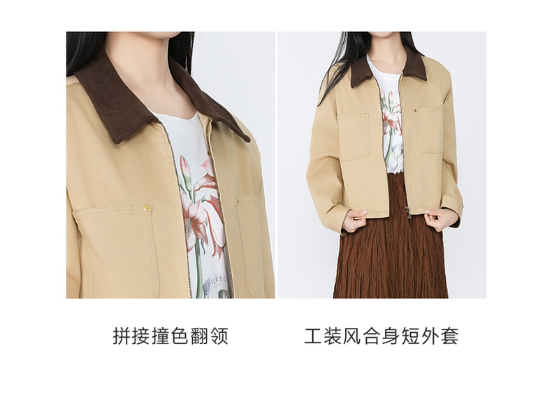 谜底撞色翻领外套长袖2026春季新品工装复古短款夹克女265MW5035