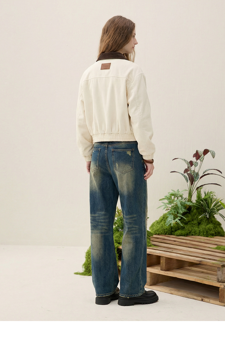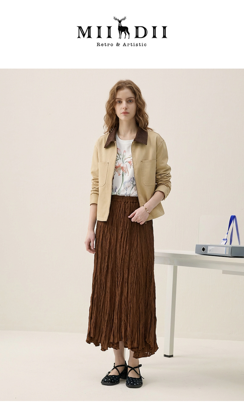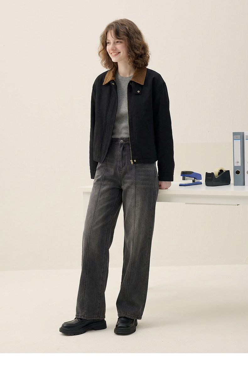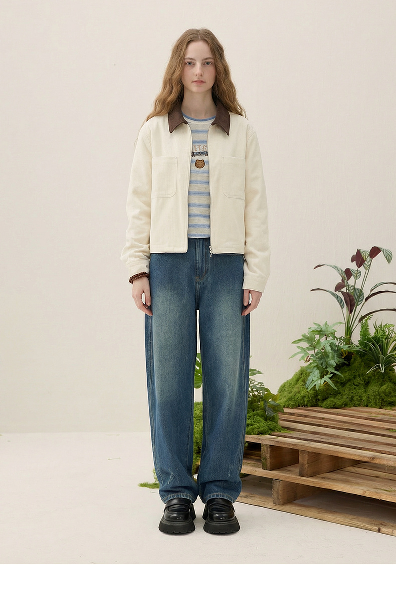 谜底撞色翻领外套长袖2026春季新品工装复古短款夹克女265MW5035