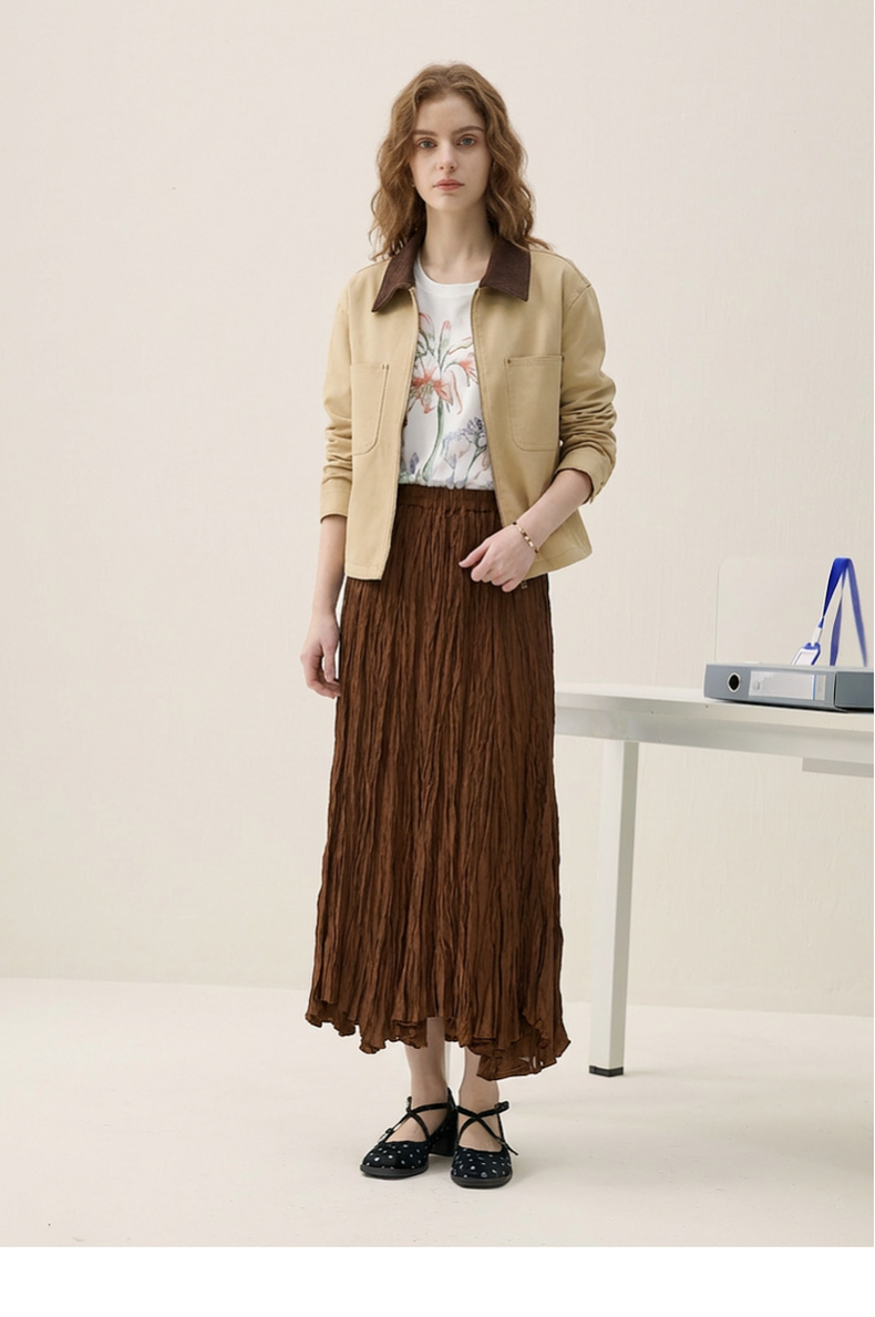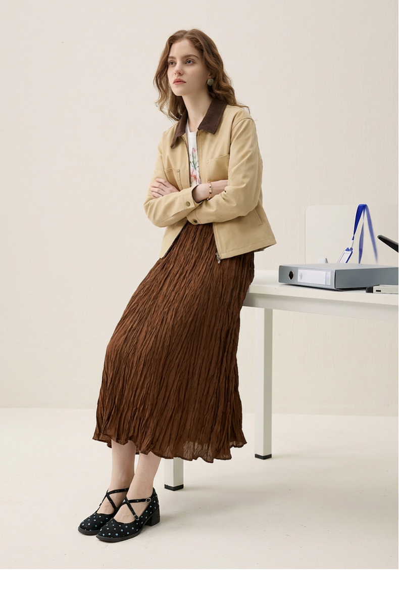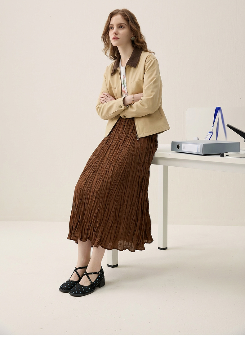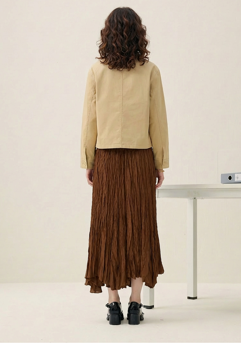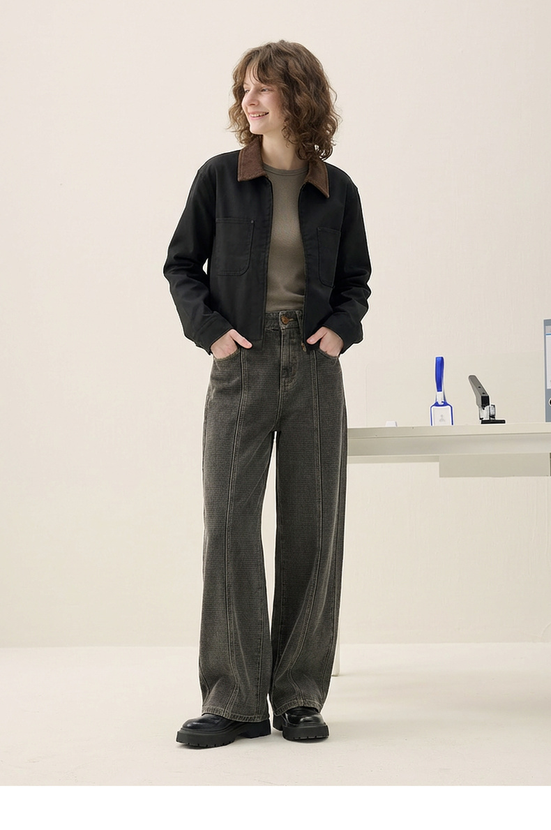 谜底撞色翻领外套长袖2026春季新品工装复古短款夹克女265MW5035