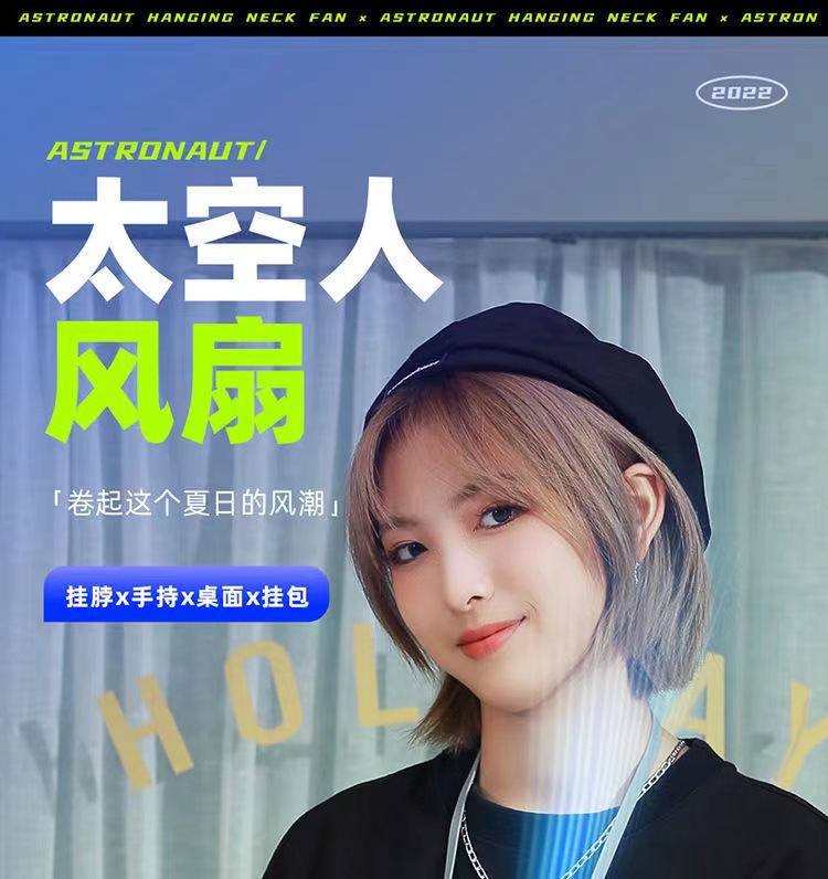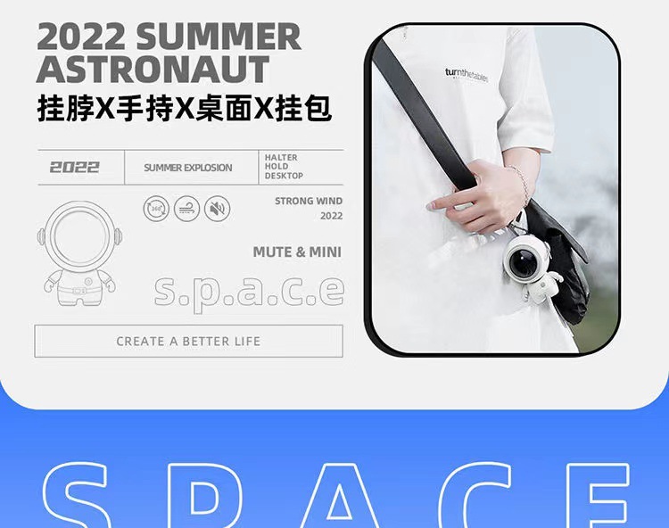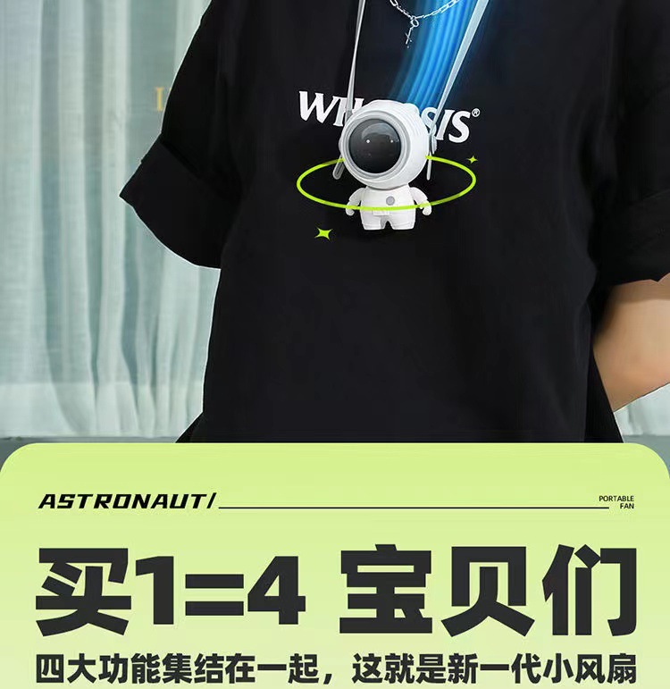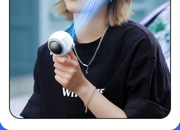【2024新款太空人挂脖小风扇】 创意宇航员无叶静音风扇 桌面办公室家用USB充电迷你风扇