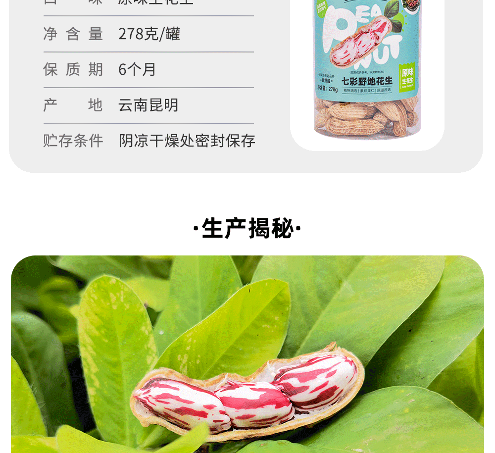 七彩野地原味生花生278g*3罐