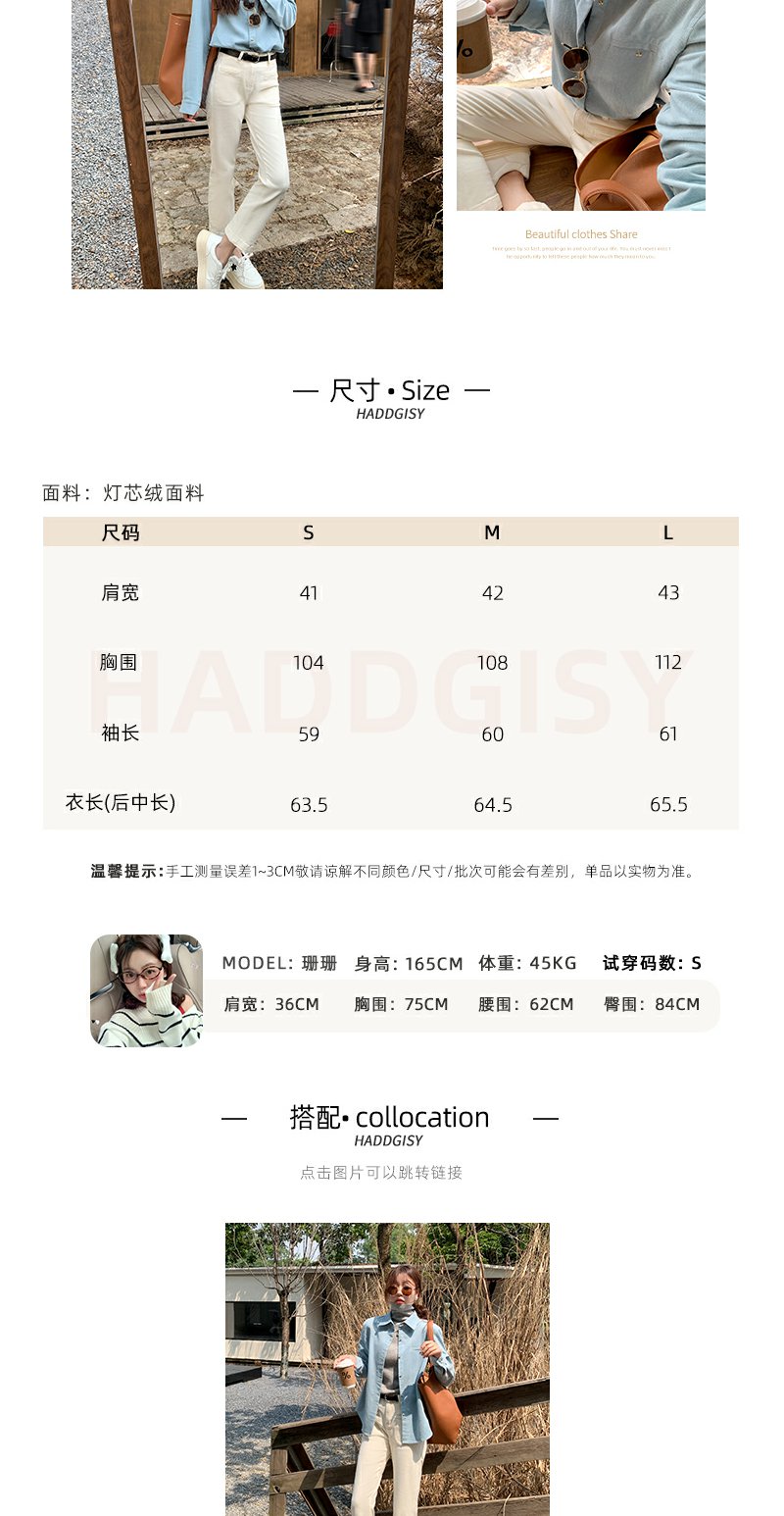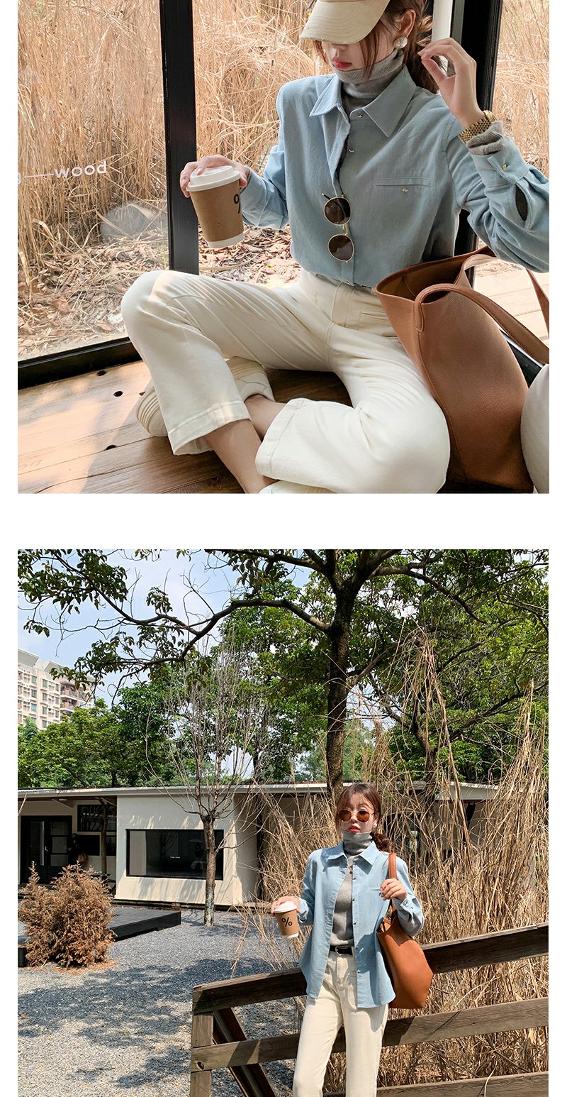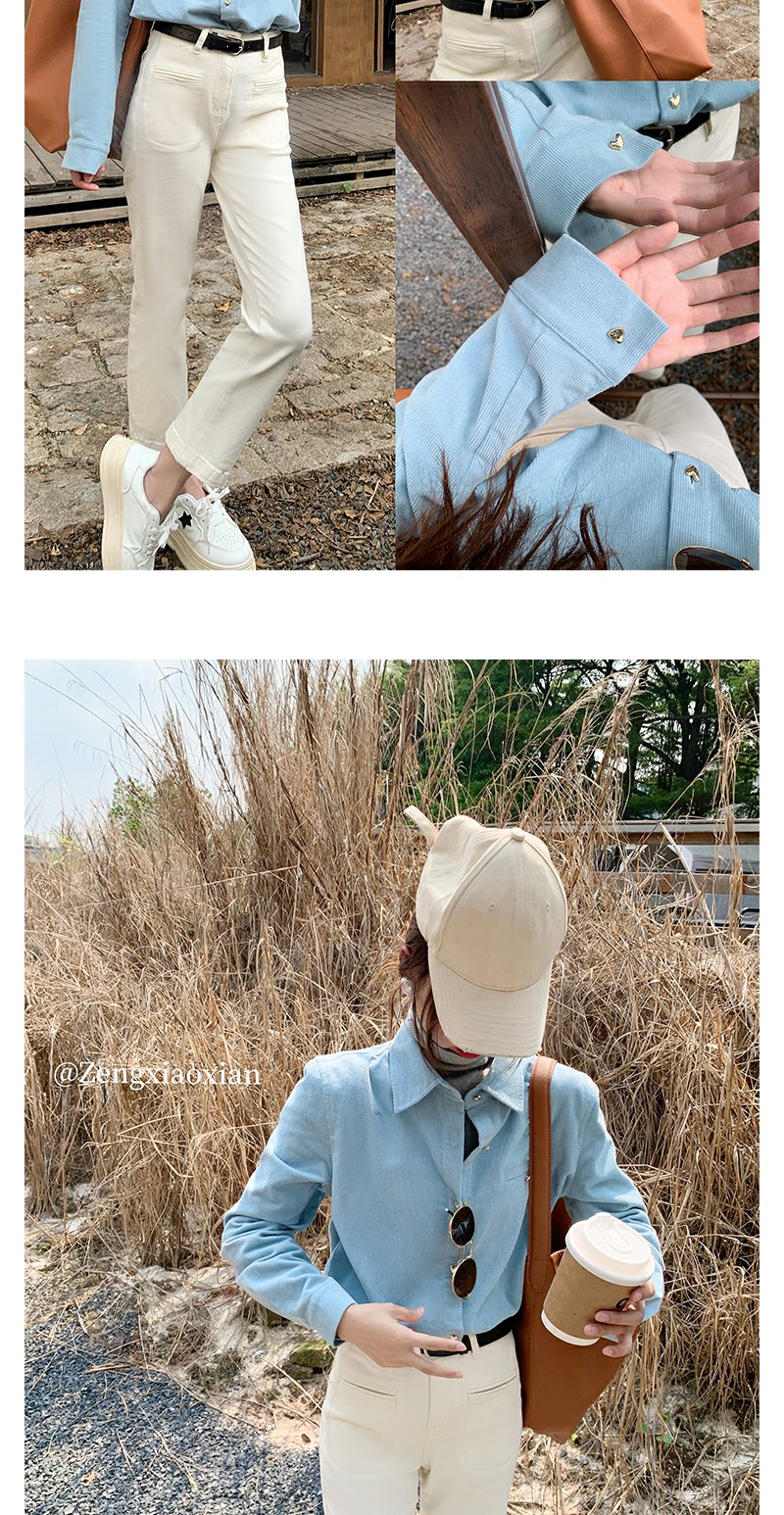 <曾小咸推荐>韩系通勤浅蓝色灯芯绒宽松显瘦衬衫