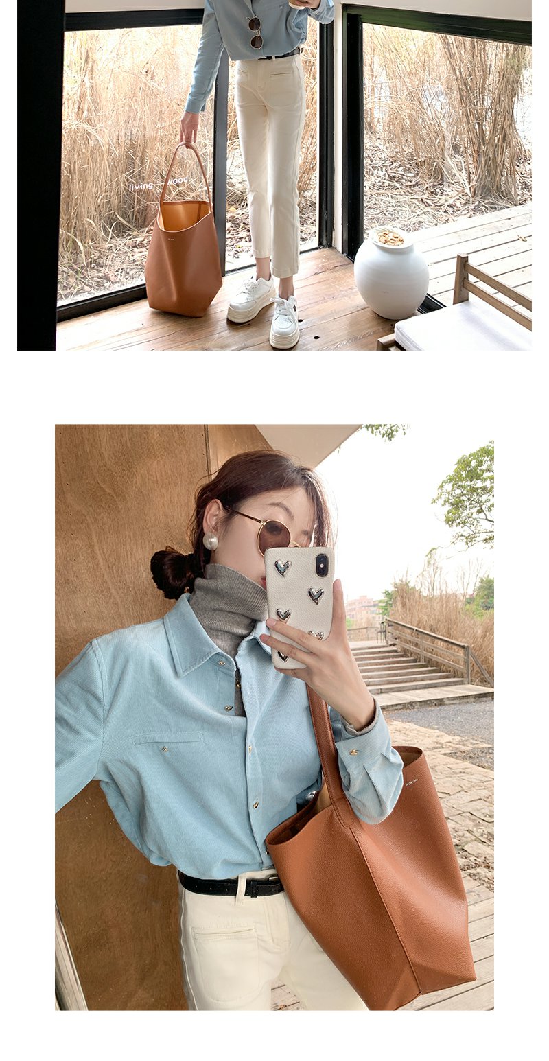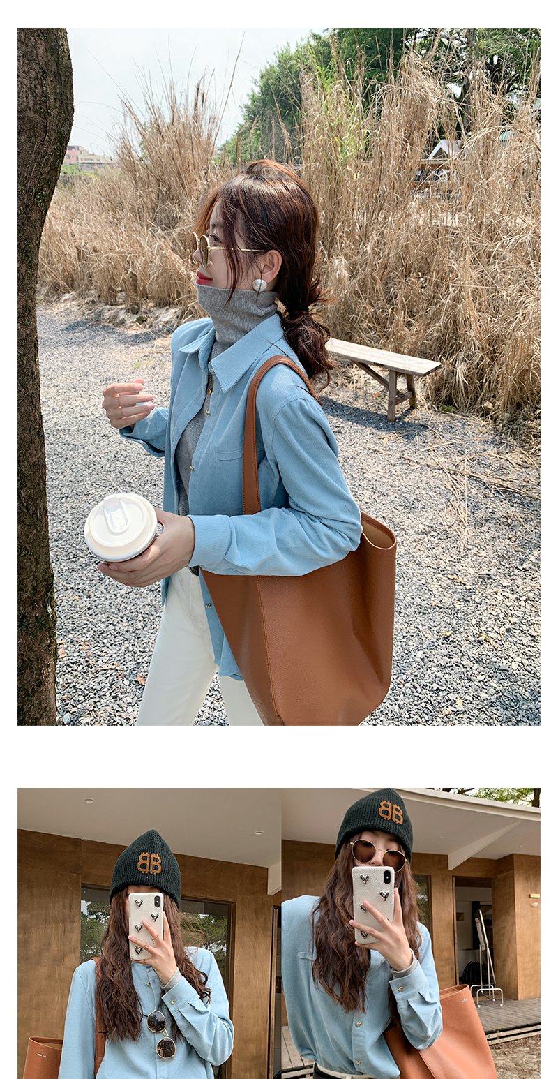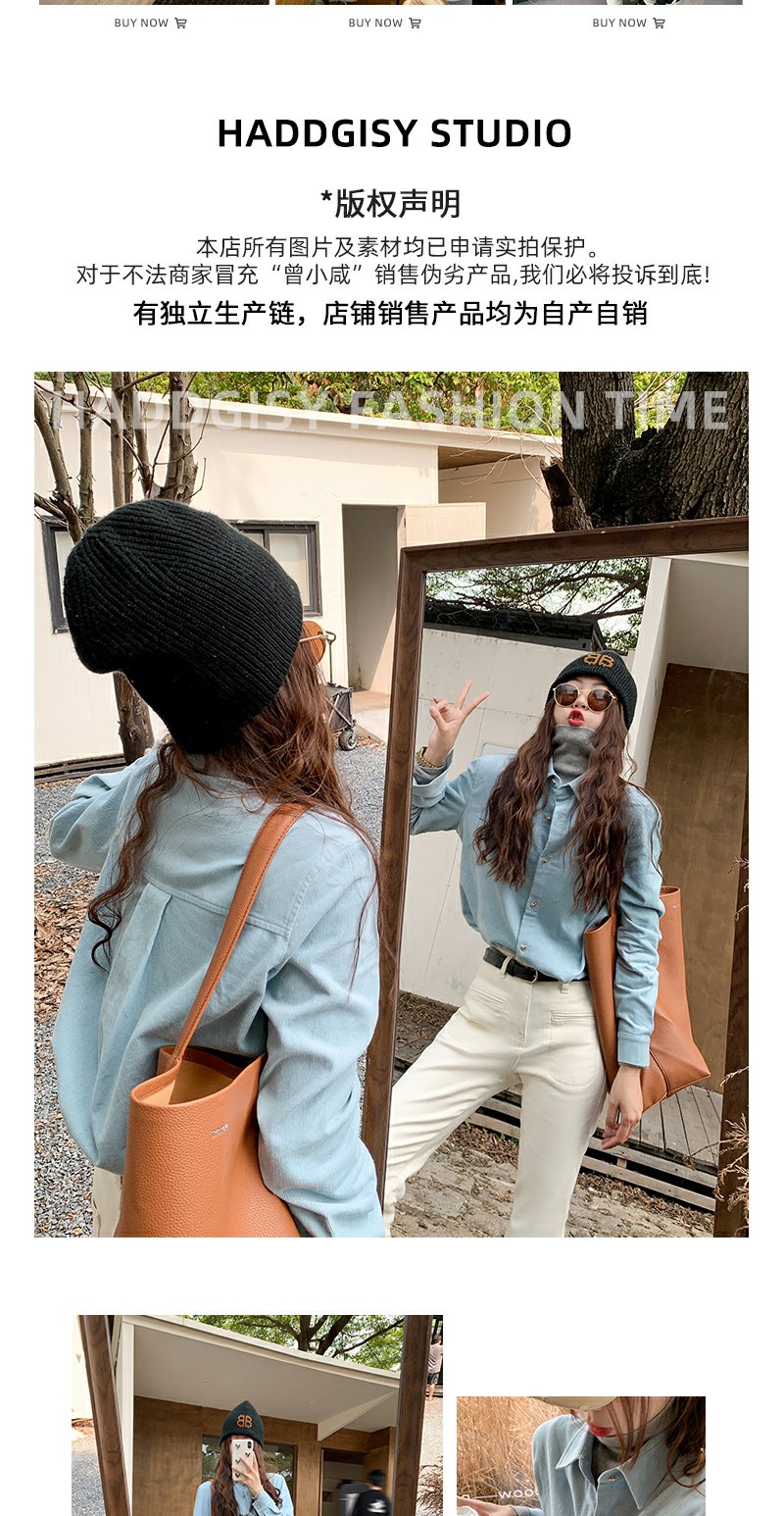 <曾小咸推荐>韩系通勤浅蓝色灯芯绒宽松显瘦衬衫