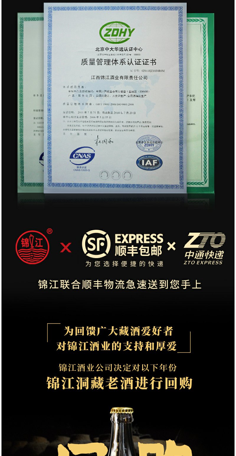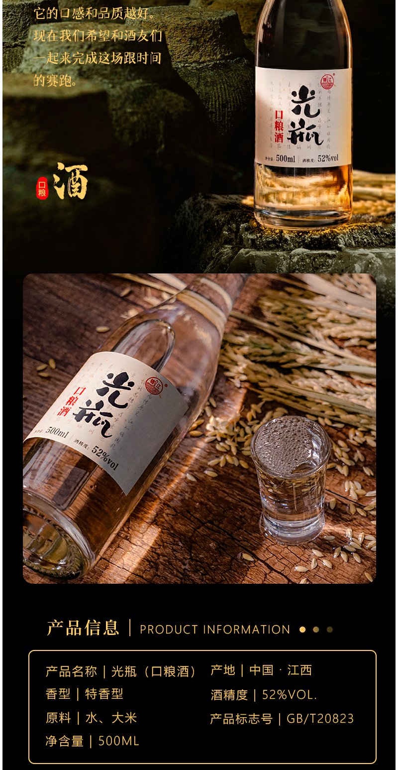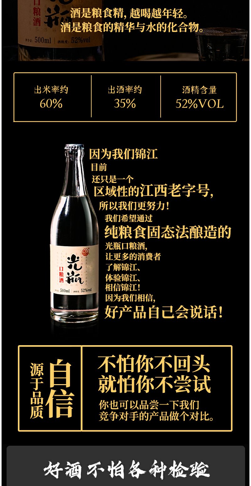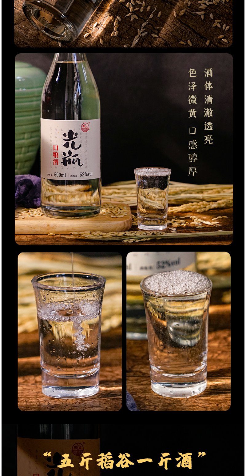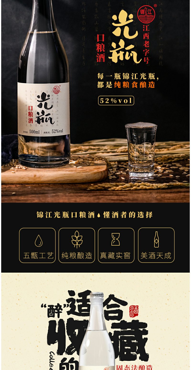 锦江光瓶白酒52度整箱6瓶纯粮食酒口粮酒500ml特香型高度白酒