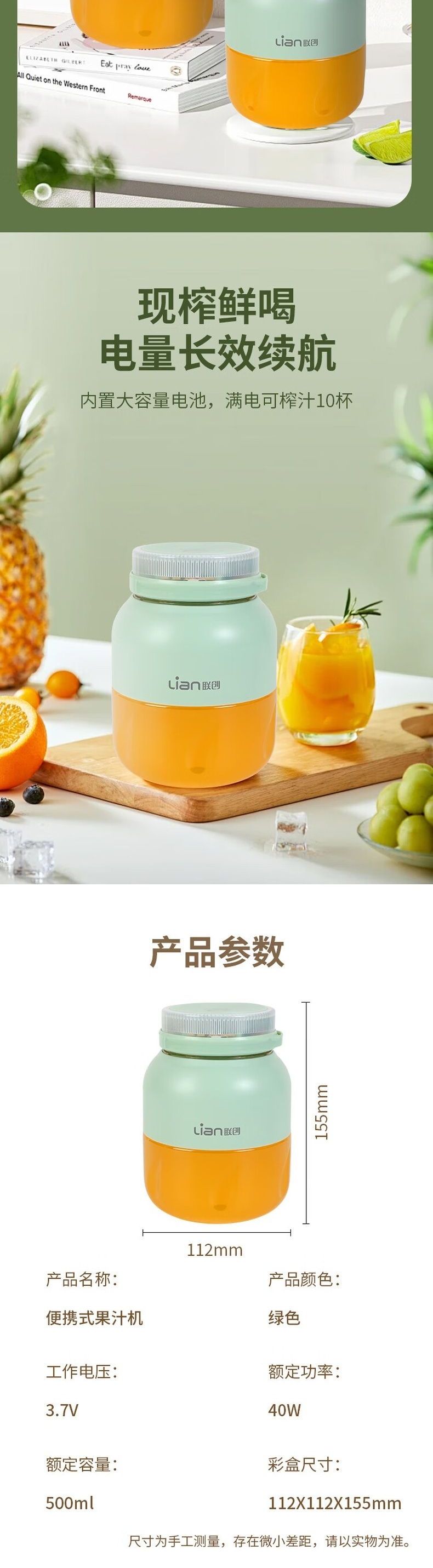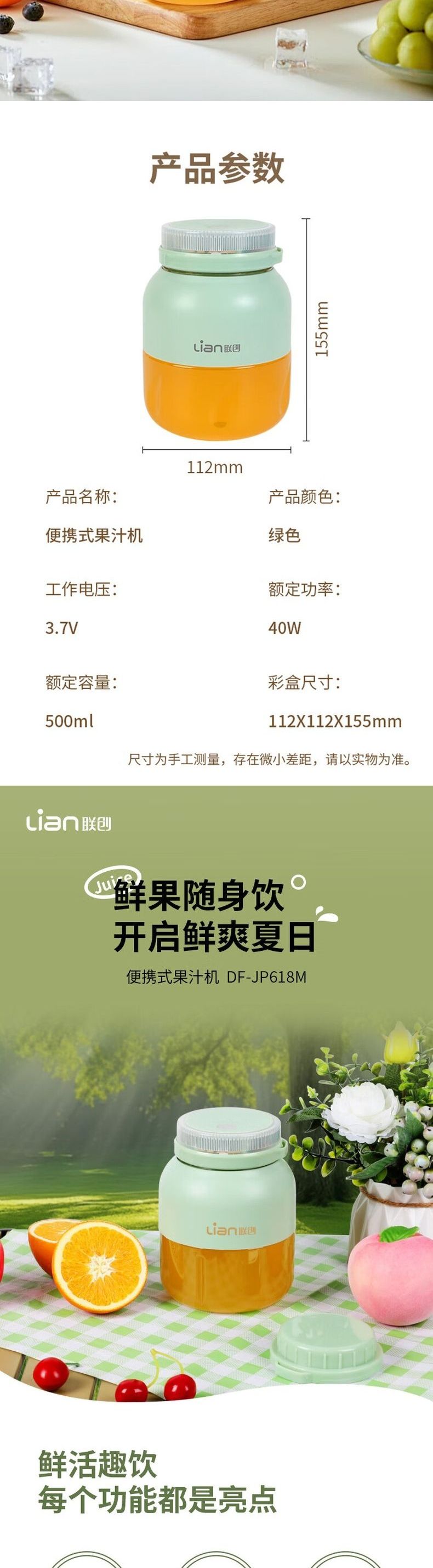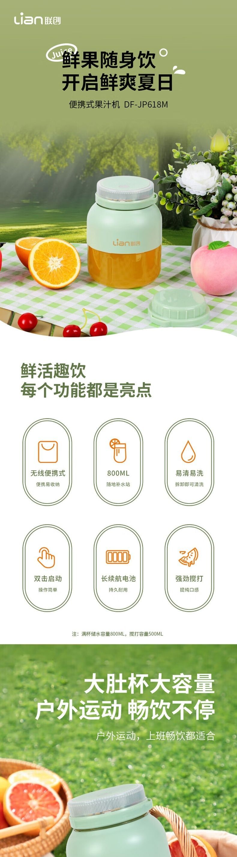 联创 便携式果汁机 DF-JP618M 充电榨汁杯小型电动水果料理机