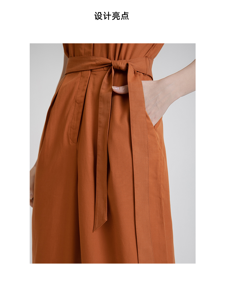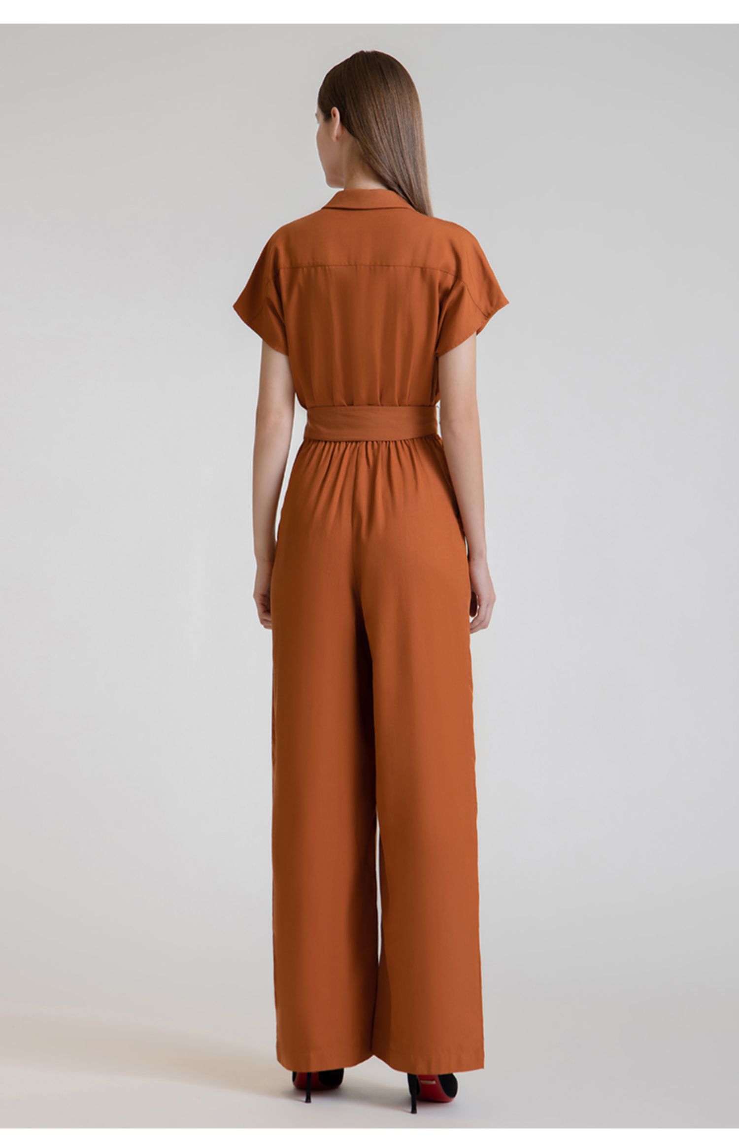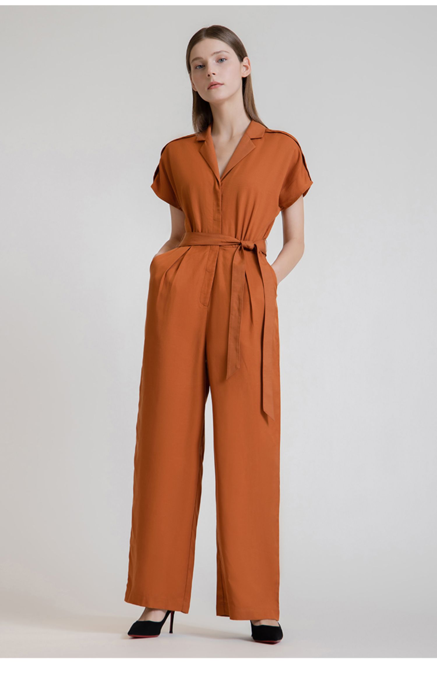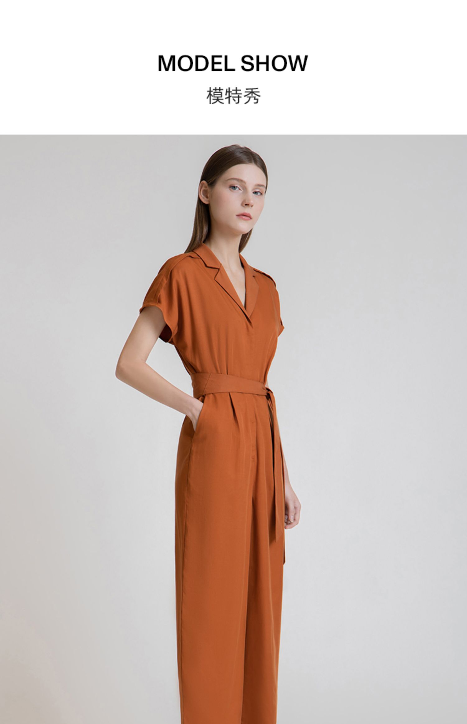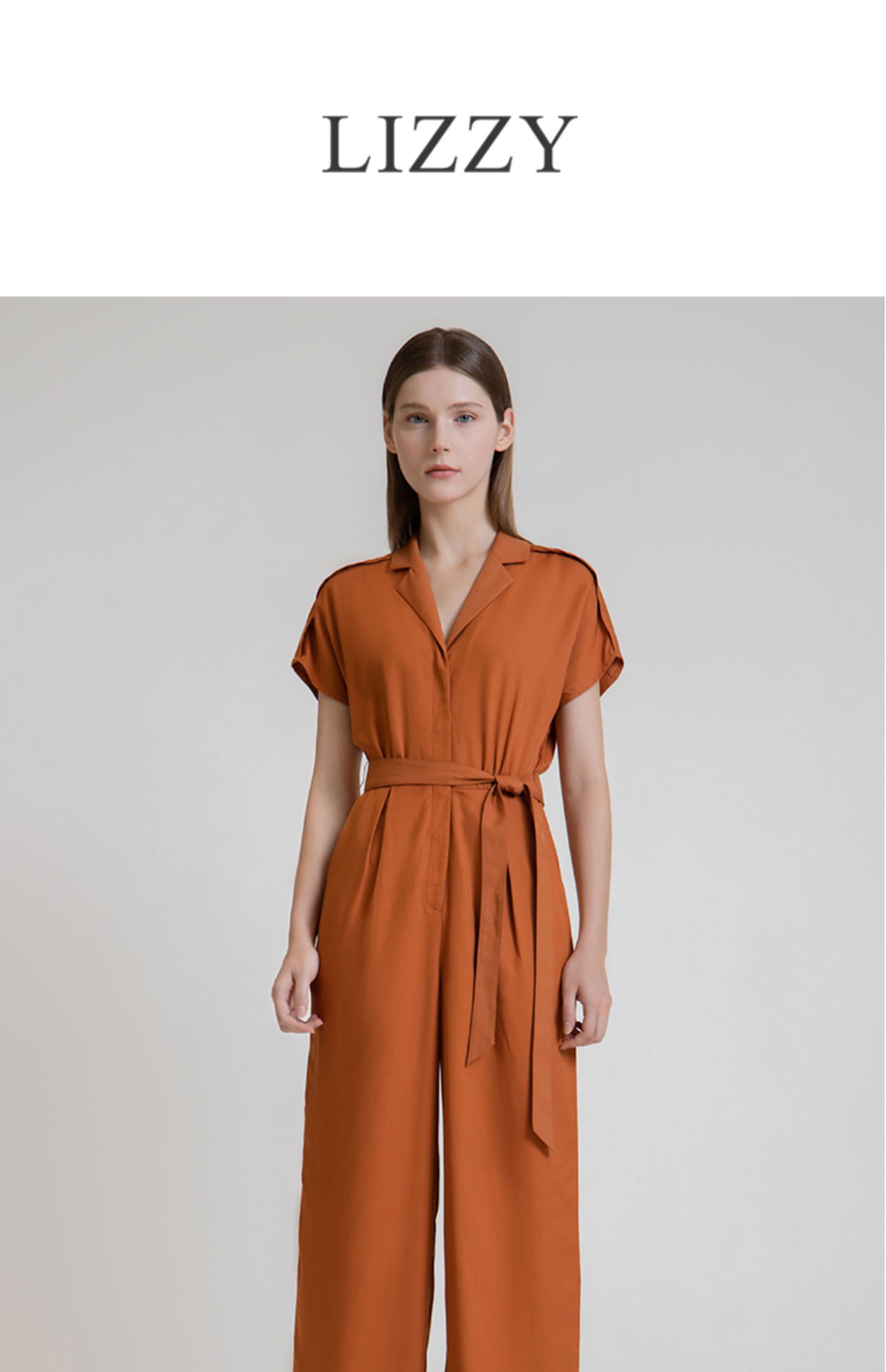 LIZZY 都市休闲纯棉西装领短袖宽松系带阔腿连体裤7633
