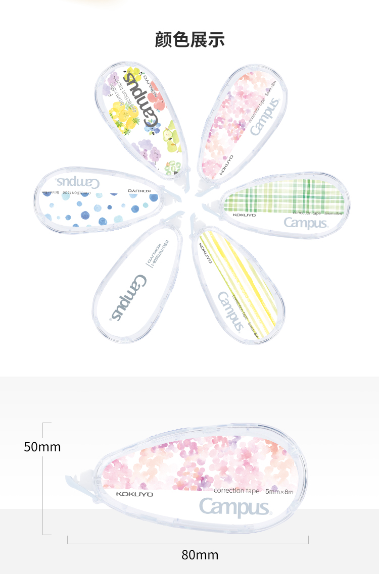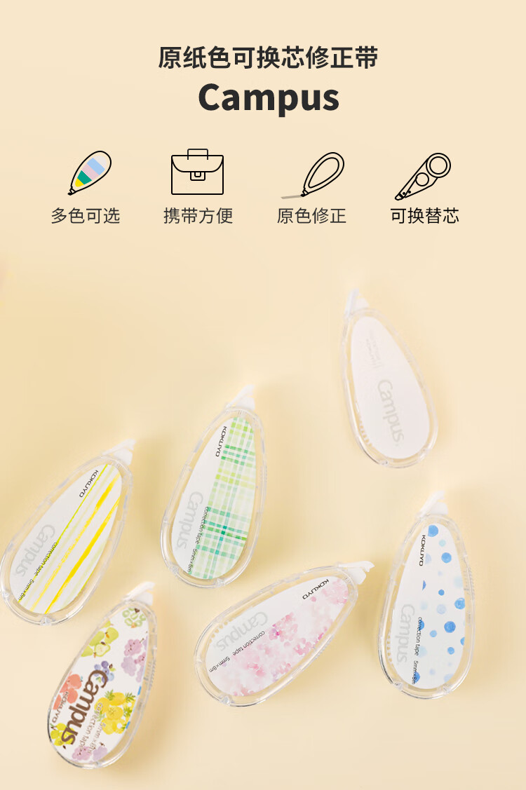 国誉Campus原纸色替芯式修正带修改带涂改带 5mm*8m 可换替芯